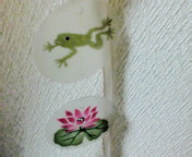 今年は父の新盆。実家でお迎えしますが 我が家には仏壇がないので普段は写真にお花とお供え。 やっぱり気分だけでもと 蓮の花の飾りをアジアン雑貨のお店で見つけました。 ついでにというか。 夏用にハワイアンなホヌのも可愛くて買ってしまったでし。(^^;) 薄い貝に手書き(風?)で僅かな風でもシャラシャランと心地よい音がしてます♪ パパさん、気付いたらこっちにも寄ってね。f(^_^)