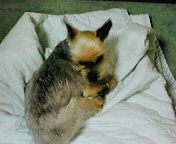 健太只今お休み中。朝の日記をアップした直後に母から健太のヘルプコールがあったので急遽実家に行ってきました。今朝は食べずにウロウロ。いつもより多い血便を何度もしてから薬を混ぜたご飯は少しだけ食べた。と思ったら戻してしまったので母が焦るのも無理ないのですが…。(=_=;)取り敢えずカートで先に病院へ行って貰う事にしました。直腸には異常なしですがそれより奥の検査はちょっと無理。やはりいつも通り点滴してもらって帰ってきました。今日は食べなくても大丈夫だからおやつのポーロだけ貰って寝てなさい。リビングにベッドを置いておいたら自分で寝やすいようにメイキングして丸まってました。けんたん、早く元気になってね!!と・・・ここまでは健太が寝てる間にそっと帰ってきましたがその後また血便症状が出てしまったので今夜はご飯抜きで様子を見ることにしました。明日の朝は回復してくれてるといいのだけど・・・。母もまだ体調万全でないのに健太の心配で不安な状態もちょっと心配です。