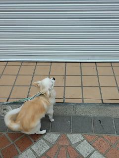 おやつのときはいつも真剣な翔です。昨日は新しい冷蔵庫が届いて大きなお兄さんに吠えるより怯えて震えちゃったの。((((゜д゜;))))しばしベランダ待機でした。(^_^;)さて。朝んぽを始めてからトリミングサロンの前をいつの間にかスルーしてお店がないのが腑に落ちない様子だった翔ちゃん。今日こそは会えると信じていたようでいつもの道、お店付近にくると鼻を上げてクンクン。ココだ!と尻尾ふりふりしてみたよ。お姉さんいないの?塗り替えたばかりの真っ白なシャッターが切ないねぇ…今日は定休日だから昼間に来ても逢えないのよ。( i_i)\(^_^)明日は実家に行くから夕方散歩にしようかな。拗ねんぼ?