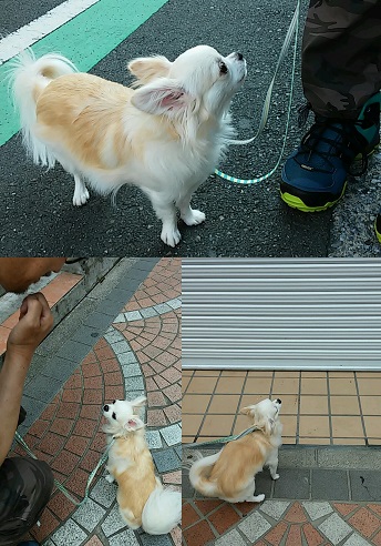 昨日から急に暑くなってきたので お散歩は日陰のある高架下の公園に行ってみました。 途中はカートに箱乗り? 砂地で走ったり案外楽しいみたい。 運動不足解消になりそうでよかったね。 今朝はついでに動物病院に寄って先日の血液検査結果の説明とフロントラインをいただいてきました。 帰り道かなりお久しぶりになるお友達わんこのアンリ君に会ったら覚えていたのか尻尾ふりふり挨拶してたの。(=゜ω゜)ノ コッカーさんで仲良しコーギーのキチ君ともお友達です。 やっぱり小さい時に知り合ったお友達には吠えないのね。 翔ちゃんのお友達は大きいワンコばかり。 ずっしりアンヨも立派だけど みんな穏やかで優しいから安心なのかな? チワワちゃん同士でも毎日会えたら仲良くなれそうなのになかなかだねぇ。(^_^;) 今日はトリマーのお姉さんには会えなかったけど 看護師さんに優しくしてもらってクンクンしてたから病院も楽しみになるかな? 来月はワクチン接種デスヨ。(=゜ω゜)ノ