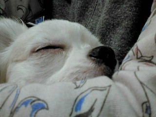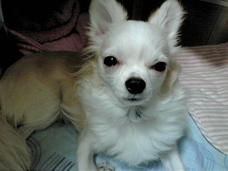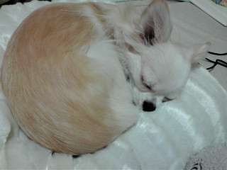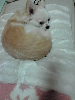 昼間は暖かいので結局上で丸まって寝てました。(^^;)