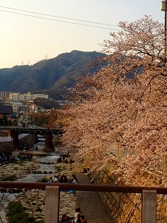 我が家の春の恒例行事のお花見。やっぱり、行っておきたいなーと思い、急遽、夙川へ。主人が午後から休日出勤だったので朝早くからお昼までの短期スタイルですが。夙川へのお花見は、実は久しぶりなんです。以前は、恒例だったのですがここ2.3年は、ちょっと浮気しておりました。でもやっぱり、夙川はいいわー。今回は、夙川で降りて苦楽園までテクテク川沿いをお散歩しながら行きました。急遽、決まったのでお茶とレジャーシートのみ。お弁当は、現地調達です。お花見の時によくお世話になっている『yummy mummy deli』さんで。ここのお弁当は、無添加無着色 保存料等も使用してない安心なお弁当。しかもお野菜もたっぷりだから、娘も大好き。ちなみに娘は、お子様のお弁当をチョイスしました。(写真撮り忘れたよ)ぺろっと完食です。足りずに私たちの分もつまみ食い。食べ盛りです。電車好きなので線路近くで頂きました。食後は、運動がてらまた、お散歩&木登り。短い時間でしたが夙川&桜を堪能出来ました。今度は、もっとゆっくり行きたいなー。