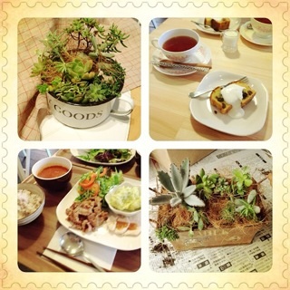今日は、お天気も良いのでお友達のBasketちゃんとウォーキング&ランチ&多肉ちゃんの寄せ植え会。盛りだくさんな一日でした。ウォーキングは、ご近所をぐるぐる。ランチは、Basketちゃんの委託先のhappy cafeさんと言う、11月にオープンした新しいお店へ。とってもかわいいお店さんでした。ナチュラルな雰囲気でのんびり出来る空間。その後は、Basketちゃん家のガレージでお互いの多肉ちゃんを持ち寄り、寄せ植え会。それぞれ、個性が出てる感じ。私は、これでもかーと言う位に詰めこんだからぎゅーぎゅーな仕上がり(笑)いろいろと勉強しなくてわ!