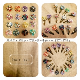 リバティプリントの布でせっせとヨーヨーキルト作り。そして、パッチンヘアピンに!今度のリュックサックマーケットに持って行く予定でーす。
