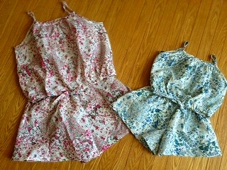 7月、8月と姪っ子と娘のお誕生日が続くので昨年からおそろいの服を作ってプレゼントしております。昨年は、おそろいのワンピース。今年は、色違いでおそろいのオールインワン風のキャミソール&パンツです。上下分かれているので脱ぎ着も楽チンです。サイズが90と140センチなのでおそろいと言えども、雰囲気が違う感じ。やっぱり小さいサイズは、かわいいっ。でも、縫う工程は全く同じすが・・・。 このサイズの違い・・・。 布もいろんな小花柄がバイアス状にパッチワークされているなかなか凝った布地。ちょっと縫い代部分が重なって縫いにくかったけど、まあいい感じに出来ました。二人とも少々大きめのサイズかな?来年も着れそうで一安心です。ちなみに昨年のワンピは、ちょっと小さくなりつつ・・・。今年で終わりになりそうです。ほんとここ最近の娘の成長ぶりは、すごいっ。服がどんどん小さくなります。女の子の服は、いろいろパターンがあるので作りがいがありますね。来年は、どんなアイテムにしようかしら・・・。