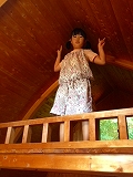 ロフトの上でポーズ。もう頭が付きそう。朝食は、手作り感がある美味しい和食。娘もモリモリ頂きました。チェックアウト後も自由に散策出来たのでまた、動物を見たり、シャボン玉タイム。 このろばさん、かなり癒されました。その後は、淡路ワールドパークONOKOROへ移動。ここは、結構混雑していました。とにかく暑くて、暑くて・・・。オカリナに絵を描く体験をしてみたり、私の大好きだった兼高かおるさんの資料館に行ったりして、少し涼んだ後、外へ。 お決まりのミニチュアワールドや童話の森などを散策。近くにヘリポートが有る様でやたらヘリの離発着を近くでみました。そして、芝すべりももちろん、必須です。結構なスピード感にびっくり。名前は、忘れたのですがクールを体験するアトラクションがあり、あまりの暑さで入ってみました。一瞬でしたが凍るような涼しさでしたよ。 ここからは、私の大好きなお土産選びに入って行きます。娘や主人は、この手のお店はあんまり好きではない、と言うか長いお買物が苦手なんでまだか?と言った感じでしたが気づけば、結構な量を買わなきゃいけないんで大変でした。ONOKOROのお土産ショップでもいろいろと物色。「たこせんべいの里」でこれでもかと言うぐらいに試食をさせて頂き、いっぱい売り上げに貢献しました。やっぱりお土産選びって、楽しいですね。お昼ご飯に食べる予定だった「道の駅あわじ」の生しらす丼がちょうど休憩時間に突入していたのでとりあえず、夕食に回して先にお風呂タイムにしました。「美湯 松帆の湯」です。ここのお風呂、初めて行きましたが露天風呂は絶景でございます。娘と一緒に入ったんでとてもせわしない感じでしたが・・・。娘は、お風呂大好きさん(水全般ね)なんでもう、テンションがかなり上がってました。そして、お風呂上りにどうしても食べたかった「生しらす丼」期間限定だそうです。白ポン酢たれで頂きます。新鮮でとっても美味しかったー。 かなりゆったりめにスケジュールを組んだつもりですがやっぱり最後はバタバタと。予定時間をオーバーしてしまいましたがとっても楽しい時間でした。日帰りも可能な距離なんで又、行きたいです。娘は、すっかり淡路の虜です。