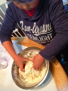 2月の週末は、主人の会社の引越し作業や棚卸などで休日出勤続きでずっと娘と二人で過ごしていました。外出続きだったのですがこの日曜は、久々に家でいることになったので授業参観でやったうどん作りにチャレンジしてみました。まず粉と塩水をこねて、その後は足で踏み踏み。そしてねかせて、切る作業です。最初はパサパサしていますがどんどんまとまって来ます。踏み踏みは、とっても気持ちよい作業でした。切るのも職人さんのようで楽しい。娘の包丁さばきにドキドキでしたがなんとかうどんらしく完成?とってもコシの強いうどんが出来ました。娘はきつねうどんで私は肉うどん。娘は、おにぎりを食べ過ぎてお腹いっぱいになってしまい、うどんが食べきれず・・・。結論は、楽しめて美味しいおうどんですが食にありつくまでの道のりが大変長いです。時間と気持ちに余裕がある時にぜひオススメです。