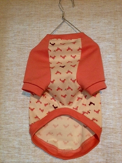 お友達からの依頼で初めて、わんちゃんのお洋服を縫いました。トイプードルのとってもかわいいわんちゃんで、まるでぬいぐるみの様です。とりあえず、手持ちのお洋服から参考のサイズを取り、娘の服を作った布地の残り布でサンプル縫い。パーツがとても小さくて、子供服よりかわいい。まるでパズルでも組み立てているかのようです。そして、早速試着して頂きましたよ。他にもいろんな形のバリエーションがあるので楽しみです。ちょっとハマりそう。