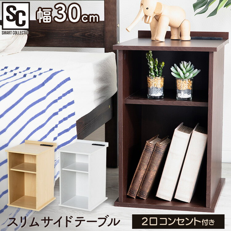 サイドテーブル テーブル オープンラック 幅30cm 幅30 スリム コンパクト 2口コンセ…