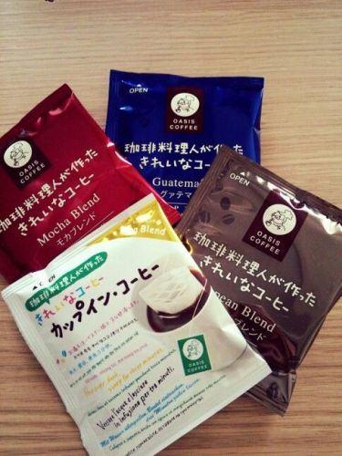 オアシス珈琲『きれいなコーヒー』をいただきました。ドリップタイプ3種類(モカブレンド・グァテマラブレンド・スペシャルブレンド)とバッグタイプ1種類。 なぜ『きれいなコーヒー』というネーミングなのかと言うと生豆の状態の時にオアシス珈琲独自の特許技術で洗浄するからなのですね。輸入したばかりの生豆には汚れがついていてそれが苦味や雑味の元となるそう。洗浄することによってそれらが取り除かれスッキリした味わいのコーヒーになります。 こちらはドリップタイプ。モカブレンドです。 カップに乗せてお湯を注いで少し蒸らします。いい香り~。 1杯分のお湯を注いでできあがり。 香りはしっかり、味わいはスッキリしています。手軽においしいコーヒーが飲めるとうれしいね。 もっと手軽なのはバッグタイプのカップインコーヒー。 こちらは以前にもモニターでいただいてます。 その時の記事はこちら。 「きれいなコーヒー」オアシス珈琲ファンサイト参加中きれいなコーヒー