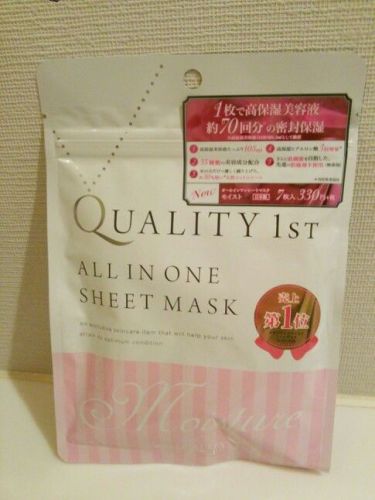 QUALITY 1ST オールインワンシートマスク モイストをお試ししました。 こちら1枚でお手入れOKのシートマスクです。7枚入りのこちら1袋にたっぷり105mlの美容液が含まれてます。 幼少期にしか存在しないベビーコラーゲンやヒアルロン酸、セラミド・レシチンビタミンC誘導体、EGFなど保湿成分を中心に35種類の美容成分配合。防腐剤無添加です。 シートは折りたたんで入っています。たっぷりの美容液。 国産(愛媛県産)の天然コットン100%のシートはみっちり目が詰まっていて厚みがあります。これが顔にぴったり密着して気持ちいい!液だれもないので他の事しながらパックできます。 10分から15分でお肌しっとり。ローズやラベンダーの香りがして癒されます。オールインワンなので洗顔後このシートだけでもOK。ただ乾燥肌の私は寝る前にはちょっとクリーム足してます。 今回は7枚入り(330円)をお試ししましたが大容量30枚入り(2800円)もあります。そちらだと1枚約93円というコスパの高さ。 訂正: 30枚入り(1900円)なので1枚約63円でした。30枚入り(2800円)はモイストではなくプレミアムというエイジングケアができるタイプのものでした。 シートマスクってスペシャルケアのイメージがあったけど最近のものは毎日のケアに使えるアイテムなのですね。 株式会社クオリティファーストのキャンペーンに参加中3月23日(月)新発売‼クオリティファーストの「オールインワンシートマスク モイスト」