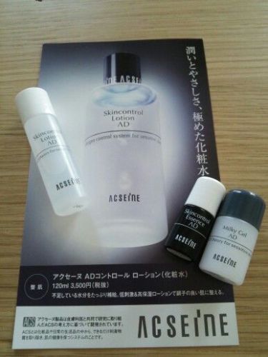 アクセーヌさんから化粧品サンプルをいただきました。 アクセーヌは皮膚科医と共同で研究するところからスタートしたブランド。低刺激・無香料で肌へのやさしさにこだわってます。 ADコントロールローション(化粧水)高い保水効果で刺激が外から侵入しにくいコンディションに整えてくれます。 サラリとしたテクスチャーなので肌になじみにくいかと思いましたが意外としっかり入っていく感じでした。 ADコントロールエッセンス(美容液) ヒアルロン酸効果でみずみずしく潤った肌を保ちます。少しぬめり感がありますがべたつく感じはなく肌がもちっとしてきます。 ミルキィジェルAD(保湿液) 肌に負担の少ない水性の保護膜で肌をプロテクトしてくれます。 こちらも少しとろみのある保湿液。最後にこれでふたをするような感じです。肌がもちっとするのがわかります。 それぞれの使用感はそんなに特徴的ではないのですがラインで使うことによって効果がじっくり出てくる感じです。無香料なので香りが苦手な人にもいいね。アクセーヌのキャンペーンに参加中【AD コントロール】 くわしくはこちら