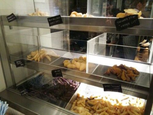 広尾にあるフレンチフライの専門店『AND THE FRIET』に行ってきました。土曜日の夕方5時くらい。行列できてました・・・せっかく来たんだからとりあえず並ぼう!と並んではみたもののなかなか進まない。 お店が小さくて1件ずつの対応なのでとっても時間がかかります。40分くらい待ってやっと入店。ポテトのいい香りがします♪ メニューの芋は6種類。なのだけど3種類は売り切れだったので残ってる3種類を選びました。 ベルギー産のじゃがいもと小じゃがいものマチルダと紫芋のシャドークイーン。 ディップも10種類から選べます。でもこちらも売り切れのものがあり一番人気の自家製マヨネーズはなかったよ・・・フレッシュバジルマヨネーズとハニーマスタードマヨネーズと2月限定のペッパークリームチーズ&メープルの3種類にしました。 メニュー表はこんな感じ。ディップは1種類季節限定で変わるようです。 お店を出てひとつつまんで食べたらめっちゃおいしかった!外はカリカリ、中はほくほく。しっかりお芋の味がして並んだ甲斐ががあったね~、とうれしかったよ。 ひとつ食べてあとは自宅に持ち帰り。 ちっちゃいピクルスがついてるの。ビールに合うじゃないの。 お皿に出すとこんなボリューム。(紫芋は別) ポテトだけでお腹いっぱいでした。がんばって並んだのでつい買いすぎた(笑) 持ち帰ってもおいしかったけどね。やはり揚げたてその場でいただくのがすっごくおいしいです。