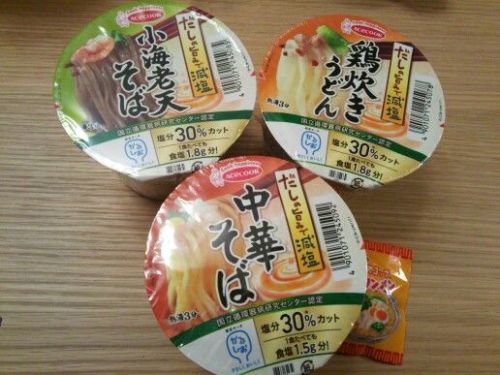 ポチカムさんから届きました。 エースコックの減塩カップめんシリーズ。減塩だけどだしの旨味でおいしくいただけるというものです。 ちょっと小ぶりなサイズ。 おいしい病院食が話題となり減塩のレシピ本なども出している国立循環器病研究センター認定。かるしおで塩分30パーセントカット・1食で塩分1.8グラム分です。 ここで一日の適正な塩分摂取量が気になって調べてみました。日本と世界では少し基準が違うようです。●厚生労働省による健康な人の一日摂取量 男性9グラム未満・女性7.5グラム未満。●高血圧の人の一日摂取量 6グラム以下。●WHO世界の人の一日摂取量 5グラム 日本は醤油や味噌などの調味料に塩分が多いので5グラムに抑えるのはなかなか難しそうですね。 さてこの減塩タイプのカップめん「小海老天そば」食べてみました。減塩なのでたしかにちょっと塩味薄めかな。でもだしの旨味があるのでそんなに物足りなさは感じません。小ぶりなサイズなのも食べやすくていいです。 エースコックオンラインショップ「デリこぶた」はこちら♪