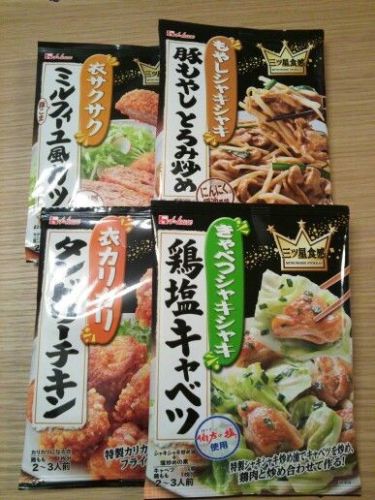 モラタメさんからハウスの三ツ星食感シリーズ4種いただきました。 ★もやしシャキシャキ豚もやしとろみ炒め★衣サクサクミルフィーユ風カツ★きゃべつシャキシャキ鶏塩キャベツ★衣カリカリタンドリーチキンこのシリーズ、フライパンひとつで料理ができあがるのでとても手軽です。 鶏塩キャベツから作ってみましたよ。 シャキシャキになる特別な油と塩炒めの素が入ってます。 フライパンに特別な油とサラダ油を入れて熱して まずはキャベツを炒めます。しっかり全体に油がいきわたるようにするのがシャキシャキにするポイント。 一度キャベツを取り出して鶏肉を炒め、塩炒めの素で味付けしてキャベツを戻します。あっという間に1品できあがりです。これは長ネギも入れてます。 いつもの野菜炒めよりもシャキシャキしたキャベツ、おいしかったです。 豚もやしとろみ炒めもいい感じ。とろみがあるのでご飯にかけてがっつり食べちゃいたい感じでした。 他の2品も手軽にできるので仕事の時の夕飯なんかに便利です。