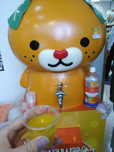 新橋にある『香川・愛媛せとうち旬彩館』に寄ったらみきゃんフェアをやってました。みきゃんのお腹に蛇口がついててそこからみかんジュース出てきた! 以前愛媛の友達から聞いていたみきゃん。今年のゆるキャラグランプリのてっぺん狙ってるようです。