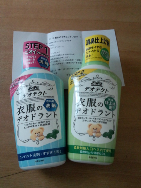 本日、到着しました~。洗濯、毎日して、めっちゃ洗剤使うので、本当に助かります!早速、使用!それも、旦那様の仕事着に使ってみました。お魚さばくので、お魚の匂いがプンプンしています><洗剤&消臭仕上げ剤を使った結果。。ドキドキしながら、匂いを嗅ぎましたが。。(結構強烈で、いつもは、漂白して、そのあと、柔軟剤とつぶつぶの香りのも使っていて、かなり色々しています。)なんと!仕上げ剤のすっごい良い香りが。。これだけで、こんなにいい香り!汚れもばっちり!今後は、こちらに乗り換えようかな~。オススメです。