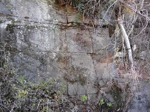 鉱山道路'08ファイナル編。 冬枯れの時期だと、やはり普段気づかないものが沢山見えてきます! 画像の岩も、その一つ・・・ って、枯れ草が邪魔でイマイチ分かりづらいかもしれませんが(汗) この岩。 見事なまでに直線的な形をしているんです。 一瞬、石垣か何かかと思ってしまいましたけど・・・ 何せ側面から見ると・・・ まるで、四角く切った岩を積み重ねているみたいなので・・・ でも、あまりにキッチリと重ねられているので・・・(汗) しかも、岩(ブロック?)と岩の隙間に、何も詰められている様子がありません。 と言う事はですよ! ここの岩を切り出して使っていたという可能性があります。 工場の基礎や、社宅を建てる際の土台用として。 道路工事で岩を削るなら、わざわざこんな手の込んだ事をする訳はありませんし。 本当に、この鉱山道路は、色々と奥が深いです・・・