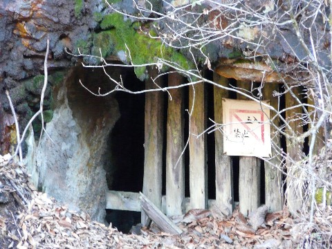 その地下に数百キロに渡る鉱床が眠る鉱山道路対岸の壁面。 良く見ると・・・ 結構あちこちに黒っぽい影があります!(涎) 廃鉱床? 中には、単に岩の窪みとか草陰だったりすることもありますが・・・ 中には、本当の廃鉱床の入口もあります!! ただし毎回思うのですが・・・ どうやって、その入口から入ったのか?(汗) って言うか、人が屈みながら出ないと絶対に入れない大きさですし!! ズリ石を捨てるための穴と言うわけでも無いはずです。 だって、側に石を捨てたら・・・(汗) あっという間に埋まってしまいますし! また、単なる通風孔と言う事も考えられますが・・・ 画像の入口(?) 立入禁止の看板が付いてますが・・・ 誰か入ろうとした人がいるのか?(汗) 一本だけ、柵が折れているのが物凄く気になるんですけど! たしか2年前は、折れていなかったのに・・・ でも、鉱床内部は酸素が無い場所もあります! 現役稼動時でも、外からポンプで空気を送り込んでいたような場所もあります! 間違っても入ろうなんて考えるのは止めましょうね!!