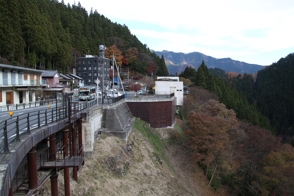 二瀬ダム2019編 って、いきなし引っ張りの予感? テニスコートへの九十九折りと逆向きやんか! と言う冗談は置いといて! そう。 一旦、駐車場方面に進まないと九十九折りに入れないし! と言う事で? あまり引っ張りを入れずに? どんどん登っていきますよ! って、速攻で最初の折り返しまで来ました! うん。 これが紅葉が奇麗だったら・・・(悔) あの付近とか、画像撮りまくっていたかもしれないけど? でも、なんかイマイチなので? さっさと折り返して! そして! 折り返し2つ目に向かいます! で・・・ 途中 とりあえず右岸の様子を見てみる! バッチャープラント(コンクリートプラント)の基礎部分と! そこに骨材を投入するためのベルトコンベア脚の基礎! 何度見てもね ココで基礎工事をやった職人さん達 岩盤が物凄く脆かったと言われてますからね(怖) 本当に凄い場所で仕事してたんですね! そして バッチャープラントが完成した後も 結構、落石との闘いの日々が続いていたのではないかと?(怖) 恐らく、原石山は・・・ いま、自分が登っている九十九折りの辺りだったはず? 吊り橋の上に通していた圧送管で材料を供給していたっぽい写真を見たことがありますが 二瀬ダムの堤体の高さは95m 吊り橋の位置の方が、若干低かったっぽいのですが・・・ 揺れる橋の上を渡って右岸に行き 崩れやすい断崖絶壁で仕事する(泣) しかも当時は 厳寒期は凍結が激しかったはず?(滑) 生きた心地がしなかったのではないかと?(泣) そして、現在残っている導水管の行き先辺り その付近に吊り橋の 右岸のワイヤーが固定されていたはず! って! この位置から見ると、ソコソコ広い平場が見えるようになってきました! が・・・(涙) やはり木が成長しすぎてて(悔) 右岸の様子が、良く見えません! そして九十九折り、第2の折り返し地点に到着! そう言えば・・・ 原石山から、吊り橋の所まで・・・ どうやって原石を運んでいたのでしょう? その辺りの様子が写った写真 まだ見た事がないんですよね(悔) でも! おお! 吊り橋の主塔の基礎部分跡と、ほぼ同じ高さまで上がって来たぞ! さすがに・・・(泣) 真っすぐ進める道は存在しませんが! って、建造当時は この斜面に、道が付いていたはずだよね? 一体、どういうレイアウトになっていたのでしょう? で! 右岸の方は・・・ やはり木が邪魔すぎです!!(滝涙) 個人的な予想では? 画像左側の案く色づいた木の斜め上あたりに、橋台があったのではないかと そう思っているのですが・・・ 角度的な問題もあるのか? 死角に入ってしまっているのか? どうしても見る事が出来ません で・・・ おお! あと、ちょっと標高を稼げれば・・・ 導水管の行き先の平場の様子は見えそうだな? ハアハア だんだんと、楽しくなった来たぞ! そして次回! 3つの目折り返し地点に向かいます!にほんブログ村
