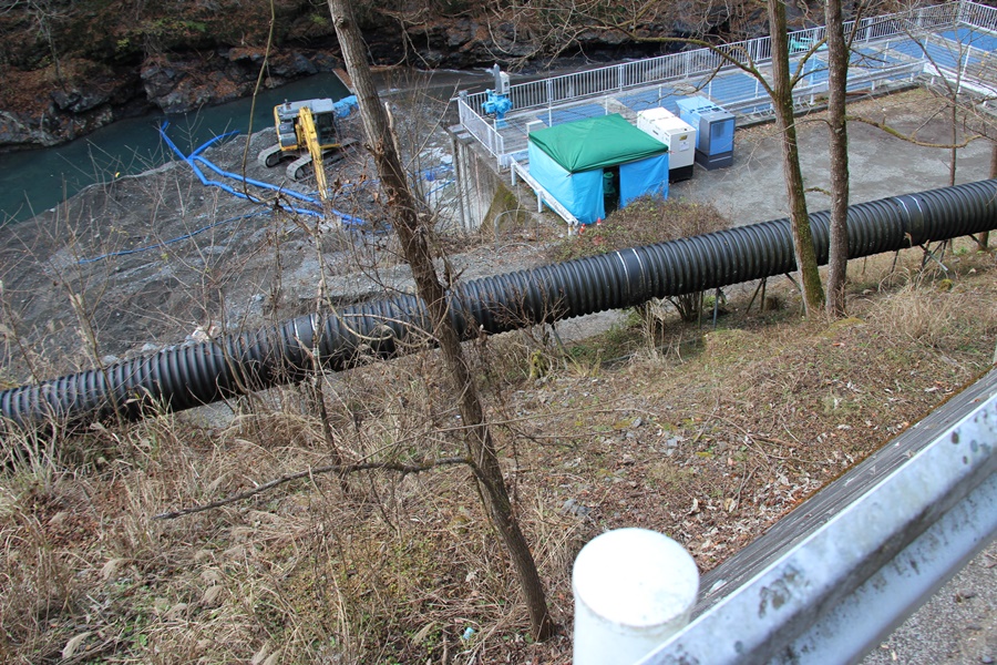 浦山ダム2019-2020編 清水バイパスの取水施設! って、アレ? 何か工事してる?? 念のために言っておきますが・・・ 手前に通っている導水管 コレは清水バイパスのモノではありません! って言うか、昔から存在しているけど・・・ 両端が外に出たまま、何処にも繋がっていません って言うか、予備のバイパスを建設するためのモノなのか? ずっと謎のままです。 まあ、そんな事はさておき・・・(焦) なんか以前とは景色が違うような気がする? それよりも!! なんか・・・ ポンプで水を吸い上げてるぞ? 確か、こんなので清水バイパスの水を汲んでたとか? 言わないよね?(笑) 何か? 作業に水が必要なのか? 良く見れば! 川を堰き止めているような感じがするし・・・ って! 川本流の水量を減らして ポンプでくみ上げた分を下流に逃がしているのか? に、しては・・・ あの2本のホースで汲みあげれる量なんて、そんなに多くないはず? でも、ココって・・・ こんな人工の堰のような所を造ってたっけ?? 魚道にしても、あまりにヘンだぞ?? それに・・・ こんなに川幅を絞る必要ってあるのか?? う~ん? やっぱし何かヘンだぞ!! う~ん・・・ どうしても思い出せない! 以前は、どうなっていたのか? と言う事で! 現地では、一体どういう事になっているのか全く分からなかったので! 帰って来てから昔の画像をチェックしていたら!! ん? アレ???(滝汗) 川の幅が全然違うし! って言うか、河岸 砂で埋まってちゃってたの?? ま、まままま、まさか! 台風19号で増水した時 飲まれたのか? 取水施設が!(ガタブル) って言うか・・・ 川の流れが全然違ってる? 本来・・・ 向こう側の狭い、コンクリートの部分は 川を堰き止めてい部部で 一部、溢れた水だけが流れていた そして! 手前側 今は土砂で埋まっている所? って言うか、ユンボが乗っている部分が川の本流だったらしいぞ!!(焦) って言うか、この変わりよう・・・(怯) 一体! 台風19号の時に何があった!! って言うか、取水口 流されてきた土砂で埋まっちゃったのか?(泣) で・・・ 清水バイパスに水を供給できなくなってたのか?? これじゃあ・・・ 濁り水を薄めるとか 絶対に出来ないよね?(泣) で・・・ ヤベェよ!(滝汗) また観光協会からクレーム来ちゃうよ!(泣) ちゃんとゼーキンぶっ込んで対策したって言ったじゃないですか! って・・・(泣) まさか、清水バイパスを保護するための砂防ダムが・・・ さらに上流に必要だったとか? あるいは・・・ やっぱし無理があり過ぎたんじゃないのか? このシステム?? でもまあ? ヤってしまった事を責めても仕方ない? そう。 2020年の観光シーズンに入る前に復旧させないと? いや? もしかしたら・・・ その頃には、勝手に水の濁りが消えているかもしれない? そう。 2007年の台風9号の時は、9月に発生して・・・ とりあえず3月頃には収まったので、翌年のシーズンには影響少なかったし? だから 去年の10月に来た台風19号による濁りだって勝手に解消するはずだよね?? きっと? 清水バイパスが復旧できなかったとしても? まあ、仮に濁りが消えてなくてもコロナのせいで観光どころじゃなくなるんだけどね(泣) ゴールデンウィークとか全て吹っ飛んだしね!(泣崩) 観光協会 幾つもの旅館や遊戯施設が存続すら危ぶまれる事態になるとは、この時点では全く想像すらしてなかったしね・・・ そして次回 2020年の3月 自粛が始まる前の浦山ダムは そう! 無事に復活できたのか? あの泥で濁った水から・・・ と言う、2019年12月9日 つづけ?にほんブログ村