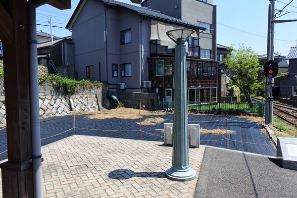 えちぜん鉄道2019編 異常に長い三国港駅のホームの一番端っこ ガス灯のレプリカか? 特に説明が無いから、良く分からないけど? とは言え、コレも・・・ 昔から存在した物ではないな? たぶん、後から造られた物だな? 結構新しいものかもしれないぞ? で・・・ そのガス灯らしきものの向こうには!! 何かの名盤? 「めがねばし」 って、あの長崎のではありません! って、2連の橋とかあるのか? あと余談ですが・・・ 長崎県 高校の時の修学旅行で行きましたが(焦) どうしてだろう? 殆ど記憶にないんですけど!(焦) 無理矢理覚えさせられた? 西肥バスの社歌と・・・ グラバー亭の池にある飛び石を足を滑らせた他校のJKが、見事なまでに池に落ちるシーンと(笑) 提督閣下 じゃなかった!(滝汗) 教頭先生が個人的趣味で・・・ 無理矢理行き先に捩じ込んで来た唐津焼の博物館くらいしかおぼえてない 平和の像とか、見た記憶すらないし 夜も自分だけ速攻で爆睡したらしく、ホテルから出禁を喰らう大事件が起きた事すら知らないという・・・ って、話は関係ないから置いといて!! どうやら・・・ 片一方だけだけど・・・ 斜めってるレンガ橋があるらしい? しかも大正時代に造られたという歴史的な橋が!(凄) これが秩父市だったら、意地でも曲げてみるんだろうな?(笑) しかも2連で! って、本当にやりそうだから怖いな!(焦) て! たぶんアレだな? 捻じ曲げたようにレンガを積み上げたアーチ橋 と言う事で! 曲げている事から 眼鏡橋 明治時代には全国で40か所程度存在したらしいのですが・・・ 現在では半分程度しか残っていない構造の橋らしい? 内側のレンガは巻き直した跡があるけど(悔) とりあえず、あの橋も後で行ってみよう! まずは・・・ 三国港駅の駅舎です! が! コレ・・・ 昭和2年に鉄道省・三国線が旅客営業を始めた時のモノでは無く・・・ また、三国芦原電鉄に譲渡された昭和19年に建てられた物でもなく! なんと! 2010年に建て換えた物です(泣) でも・・・ 古い駅の材木を末永く大切に使いましょう計画が発動したらしく? 元々あった、木造駅舎に薄板化粧板を張り付けた駅舎の・・・ 柱とかをそのまま使いました! って言うか? 一回解体して、ソレを新たに組み直したと言っても良いレベルのモノらしい? 駅名表示は・・・ わざとそれらしく書きましたが! 元々は「三国港」と 現用の仮名遣いだったらしい?(涙) 出札口も、それらしく造ってある 鉄道省(国鉄)三国線の三国港駅時代のモノを可能な限り再現したらしい? しかも! その後の京福電鉄から、えちぜん鉄道に譲渡された時に出札口は改造されたらしいのですが・・・ それを昔の姿に戻したらしい? 材木は戦前のモノだけど・・・ 2010年に建て直されているので まだ(今年で)10年しか経ってない(焦) 古いようで新しい駅舎だったりする で! 自販機も、駅舎の色に合わせて・・・ 一部が茶色く て! さすがは海水浴客(三国サンセットビーチ)が利用する駅だな? 砂が付いた足を洗う場所がある(笑) 砂だらけのビーサンで電車に乗られてもね(困) あとで車内を掃除するのが大変ですしね!(疲) あと、来るときに水着を下に穿いてきて お約束で替えの下着を忘れた時に(涼) とりあえず仕方なくココで水着を洗って乾くのを待ってから って、そんなは無いよね? と言う冗談は置いといて! なんか・・・ この三国港駅 駅の外に出るのが物凄く大変なんですけど!!(遠) って言うか!(叫) 駅から出るための踏切 どんだけ遠いんだよ!(泣) って言うか、さすがは国鉄(鉄道省) 無駄に長大なホームを造るよね? 旧・三国線 ガソリンカーが輌で運転されていたらしい? まあ、夏場の臨時列車で! 蒸気機関車に牽引された、長大列車が乗り入れる事もあったのかもしないけど? 半端なくオーバースペックなのでは? って言うか、国鉄クオリティ全開だよね? このホーム!(困) やっと踏切の所まで来たよ! ちなみに・・・ この場所まで電車は来ないので? 警報機は付いてません! って、ちょっと待て? この狭い第3種踏切 この幅で・・・ 東尋坊や松島水族館に行く人達が大勢来た時 渡るの大変? あ! そうか? 利用者数少な・・・(自粛) そして! やっぱし無駄に長すぎるぞ このホーム!(笑) そして・・・ 京福電鉄に譲渡されて 電車が大型化された時にホームの嵩上げがされてる その時。 この一番端っこまで全て嵩上げする必要があったのか??(謎) という疑問もあるけど・・・ さすがは国鉄! 無駄に大枚払って長いホーム造るのは得意だよね? 戦前 それだけの貨物輸送量があったのか?? って、良く見ると・・・ 右側に、旧貨物ホームの跡が残ってる! 歩道が突然のように高くなっている部分 たぶん、旧ホームの跡だよね? しかも、その高さの違いが凄すぎ!(低) にしても・・・ どんだけ長いんだ? このホーム(唖) 使っているのは、真ん中付近の50m弱だけなのに! って言うか、鉄道省 一体、何両編成の列車を入線させる気だったんだ? ココに!! で、ガソリンカー1輌(しかも15m級の)で運行してたって 一体どういう事なんだ??(謎) しかも戦時