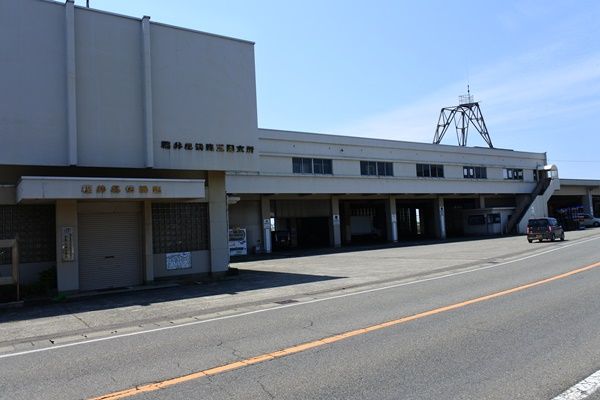えちぜん鉄道2019編 今度は三国芦原線の方に移動します! で・・・ ずっと立ちながら(1時間近く乗る事になる)車窓からネタになりそうなものをガン見 じゃなくて! チェックしながら辿り着いたのが・・・ 三国港駅(みくにみなと) 夏だしね! お盆休み最後の土曜だし! しかも海だよ! 三国サンセットビーチに行くバカップル じゃなくて、リア充爆・・・(滝汗) で、混雑しているのではないかと心配してたけど・・・ どーしてこーなった? 芦原温泉口を過ぎたら、車内がガラガラになってしまった!(焦) 終点まで乗る人 意外と少ない? て、良く調べたら・・・ 1日当たりの平均利用者数が150人程度! だから! 1両編成の単行運転で余裕で乗客を捌けちゃう?(焦) って言うか、三国港 そんなに廃れているのか? って言うか、ココから松島水族館とか東尋坊まで行くバスも出るんだよね? って言うか、みんな自動車で来るのか? 電車使おうよ! ちなみに、えちぜん鉄道にはサポータークラブと言うのがあって! 年会費1000円払うと、運賃が10%引き(1日フリーパスも同じく10%引) 65歳以上のゴールド会員は20%引きになるというシステムがあって! 結構利用者数が多いらしい! 自分 ついうっかり・・・(焦) 帰りしなに申込書にサインしそうになったけど! よくよく考えてみたら、毎年来るのは予算的に無理なので(泣崩) でも、地元の鉄道使おうよ!(願) と言う話は一旦置いといて! この三国港駅 実は、物凄く複雑な経歴があって・・・ 元々は鉄道院(現JR西日本)の貨物駅でした 大正2年に開業したらしい? 翌年の夏から、夏場だけ? 海水浴客の輸送やや花火大会の時にのみ、乗客を乗せた列車が臨時で入って来ることがあったらしいけど 基本! 荷物の取り扱いの実で、人の乗り降りは無かったらしい? ちゃんとした旅客駅になったのは昭和になってから! とは言え・・・ まだ、この時 京福電鉄時に買収される前の三国芦原電鉄は開業してません 昭和4年になって、お隣の三国駅まで三国芦原電鉄が開業 鉄道省の三国駅の対面に駅を造って、電鉄三国と名乗っていたらしい? そして、三国港へは行かず そのまま東尋坊まで線路を敷いたらしい? が! 戦前の昭和19年になると ガソリンなどの燃料統制が始まり、鉄道省のガソリンカーが運転出来なくくなり(困) 蒸気機関車での客車牽引に代わるけど・・・ 戦時中 軍港でもない三国港に回す列車が削減され そして支線に回す蒸気機関車と、その動力に使う石炭が足りなくなってていき(泣) 電気で動く三国芦原電鉄の方が輸送力としての主力になって行くんですよ! そして終戦直前の1944年末 鉄道省は三国支線を休止! 三国芦原電鉄に三国~三国港までの線路を貸すことになり この時に、三国芦原電鉄(現・えちぜん鉄道)の終点が三国港になるのですが・・・ 戦後にちゃっかり?(笑) 福井や武生から直通の臨時列車を乗り入れたりとか やっていたらしい? そして昭和47年に、国鉄の三国支線(休止中だけど)が正式に廃止となり! 京福電鉄(現・えちぜん鉄道)の所有物になるんです まあ、そんな経緯があったので? 元が貨物駅だっただけに! 半端なくオーバースペックなホームの長さ(笑) 夜間に列車を留置しておくわために、側線を残こしてたり・・・ そして! 有り余ったホームの一角には えちぜん鉄道の資料館が! って言うか、発車信号が電車の停車位置から50mくらい先にあったりする(笑) レンタサイクルも、この中に保管してあったりする なお! この中 物凄く貴重な資料と、どうしてもチェックしに行きたくなるような廃線跡とか(ハアハア) ああ、どうして いつも、こういう方向に進むのか自分?(困) だけど! 館内撮影禁止!!(泣崩) 鬼だ! あんな凄んごい物見せつけられて、活動用の資料として記録しておきたいのに 画像撮っちゃダメとか! あと、地図が!!(悔) そう、電鉄三国から東尋坊まで線路があった頃に、鉄道省三国線の線路を超えるための橋脚跡が残っている位置が描かれてたりとか!! くっ! メモ用紙持ってくるの忘れたから、記録しておけない!(困) もう既に劣化が始まってる自分のノーミソでは記憶しきれないよ!(滝涙) そして、鉄道省の三国港駅にガソリンカーが停まっている写真とか 物凄く貴重な資料がてんこ盛りなのに!! 中の様子を撮れない!(泣) 何? この生殺し状態!!(涙) しかも館内はクーラー付いてないから、結構暑いし!! ん? か☆道楽か? 三国港駅にも、か☆道楽があるのか? って! あ! 蟹の向きが逆だ! パチモン じゃなかった!(焦) 三国港と言えば! 越前ガニ(ズワイガニ)が有名ですしね! あと余談ですが・・・ 北陸三県 富山・石川・福井で ズワイガニの名前の呼び方が違います! 同んなじズワイカニなのに・・・(石川県は「加納ガニ」、富山県は、単に「カニ」と言うらしい??) で! 自分の所のカニが一番美味しいと絶対に譲りません!(困) 下手な事を言うと県境を跨がせてもらえなくなるといけないので・・・(滝汗) コメントは控えさせていただきます お察しください!(願) まあ、お昼行く前に! とりあえず駅構内と・・・ そして