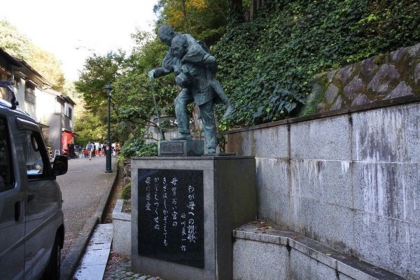 某・とんちのお坊さんアニメのスポンサーになってた 「あのお方」 が母親を背負って歩く像が建ってるんですよ!!(焦)