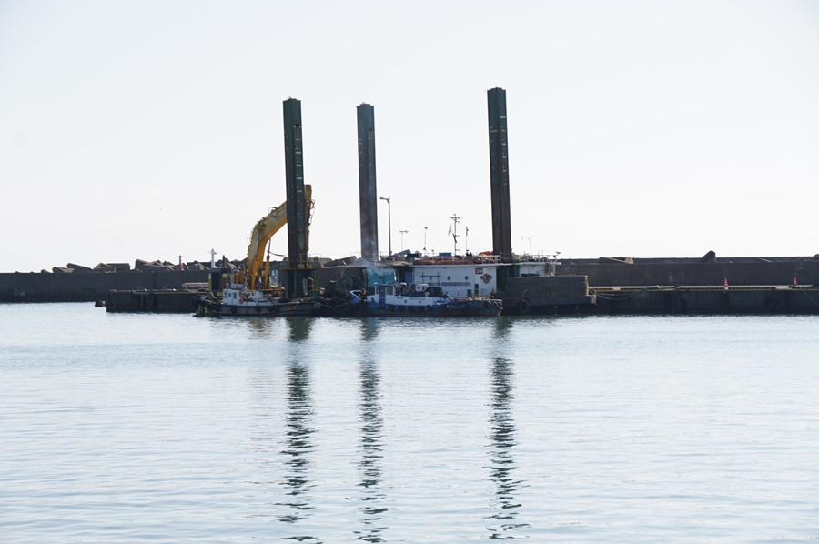 千騎ヶ岩 から、あの 浚渫船 が停泊している堤防の方に向かいます!
