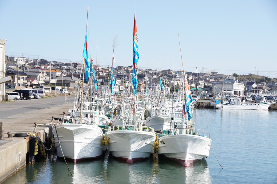 漁船に揚げられている大漁旗も全く動いてないしね!