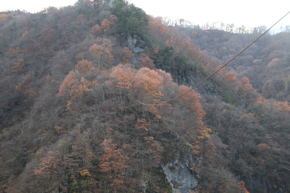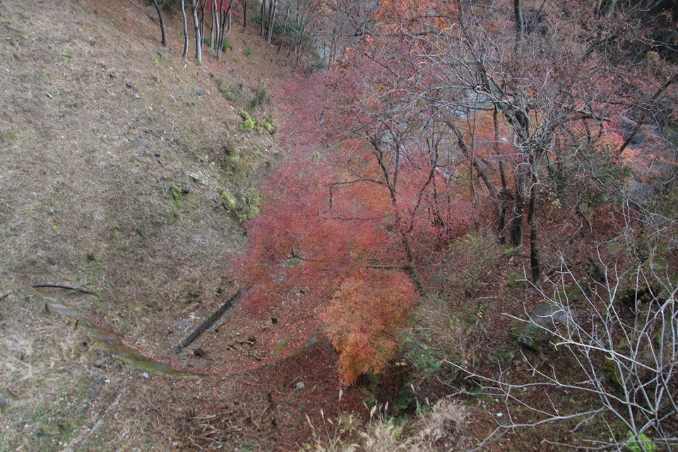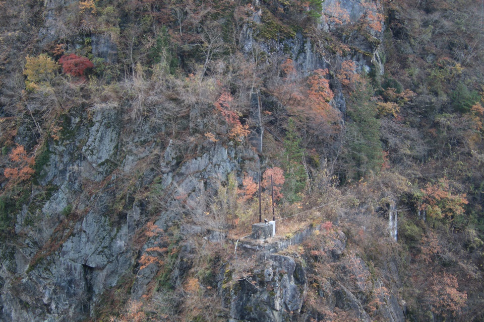 右岸は、 吊り橋のワイヤー用のアンカー が写っていない!(焦)