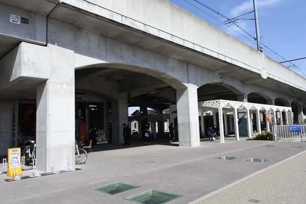 この 駅前広場のベンチ