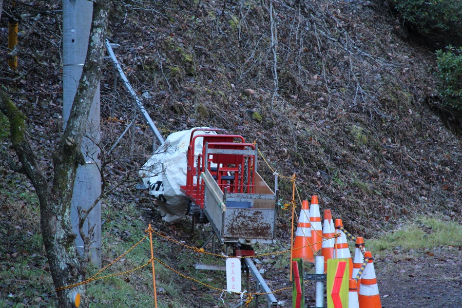​落石防護柵が倒れたとか、その基礎部分が崩れたとか?