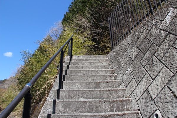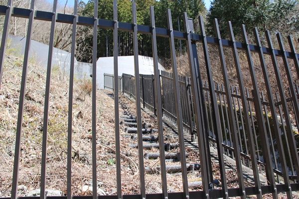 最初の階段を登り切った先で柵が途切れていたので