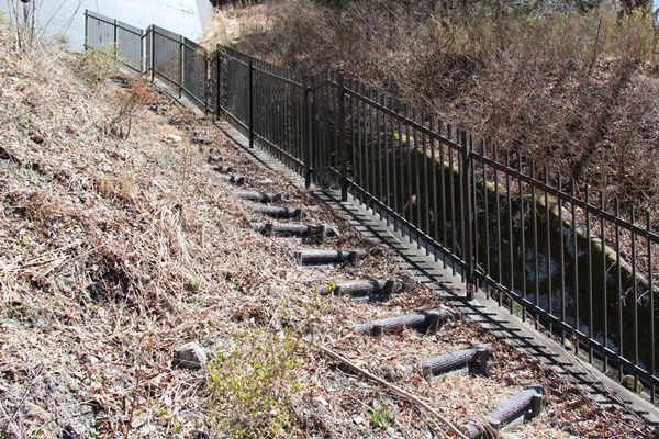 コンクリート擁壁の上を歩いて行けば