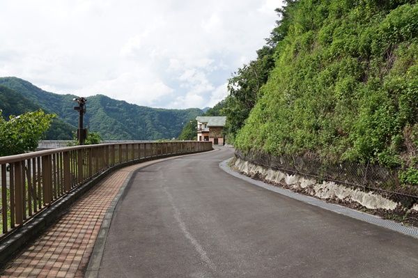 ダムカード の配布は、山を下りた先にある