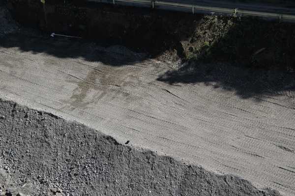 こんもりと砂利を積み上げた路盤の場所は