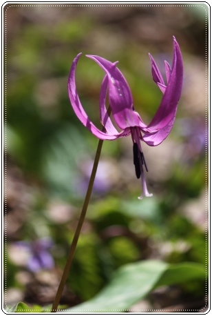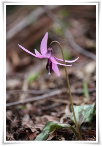 今日のお天気は 最高気温 15.1℃ 最低気温 11.1℃小雨が降り続く1日となりましたさて、さくらを求めて のシリーズもようやく一段落今日は何のにしようかと悩む事しばし・・・・・う~ん、ブログ用に準備したのに使わずに溜まってる3月のも有るんだけど・・・・ 今の季節にしか見られない植物たちが優先だよね~ スプリング・エフェメラル ~カタクリ~ 樹木公園 <4/16>スプリング・エフェメラル って聞いた事が有るでしょうか「 春の儚きもの 」とか「 春の妖精 」とかいう名前も有りますよ~エンゴサク春先に花を咲かせ、葉っぱは夏ごろまでで地上の姿は消えてしまいますその後は地下茎や球根の形で次の春の訪れをじっと待つ植物たちです上のの エンゴサク もその中の一つですねそのほかにも今でブログでいつくかの植物たちを紹介してきましたよ~ キクザキイチゲ・ショウジョバカマ・ユキワリイチゲ・コバイモこの植物たちもみんな スプリング・エフェメラル ですよ~ ギフチョウ広い意味では早春にしか姿を見る事が出来ないこのチョウもその一つと言えるそうですと言う事で、4月16日に樹木公園で撮ってきた カタクリ たちの姿をご紹介です山奥の 平栗 まで行かなくても、時々行ってる樹木公園にもこんな群生が有るんです毎年手入れをしているのでその数はどんどん増えているようですよ~この前の日、実家の両親はここでギフチョウも見たらしいのでちょっと期待してたんですでも・・・・・飛んでいる姿は1頭だけ確認出来ましたが、あっと言う間に飛んでちゃった~ 同じ カタクリ でも色や模様の濃さには個性が有るようですこれは花弁の色も中の模様も色が濃い目こっちは中の模様がちょっと薄めかな~中にはこんな薄い色したのも有りますねその咲き方もやっぱり個性的ですよ~思いっきりギュ~ンとひっくり返った花あんまり勢いが良すぎて花弁がクロスしてるのも有るよ~私は少し丸みの残ったこのくらいの咲き方が一番好きですギフチョウが現れないかと待ちながらいろんな花をしゃがんではを撮ってました残念ながらチョウは現れませんでしたけど、ミツバチさんがお仕事してましたよ~春先のほんの短い期間だけの スプリング・エフェメラル たち短い春を精一杯謳歌しているようですね今日はここまで、明日はもう一つのスプリング・エフェメラルをご紹介しますね~ 今日のたち 水月楓 蓮花梨 Jun今日はでみんなでゴロゴロもうすぐGWだけど、には関係ないよね~みなさんは GW の予定はもう決まったでしょうか chappyへのメッセージはこちらから