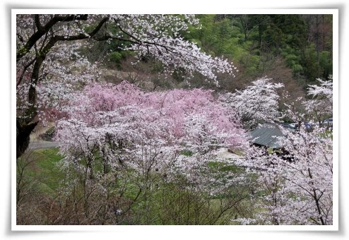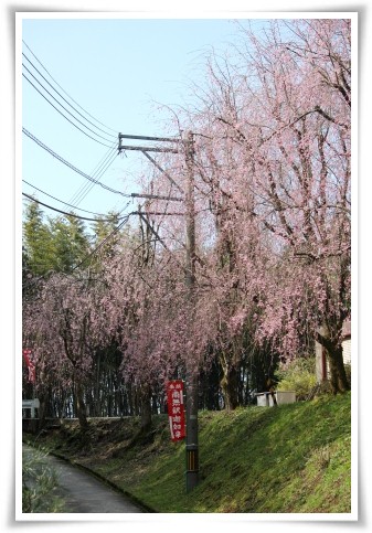 今日のお天気は& 最高気温 8.9℃ 最低気温 3.3℃今日も気温は上がらずに寒い1日当然どこへもを撮りに出かける事も無くでお昼寝三昧となりました外へ出たのは新聞を取りに玄関先までだけなんだもんね~ さて、今日のは昨日の続きなんだけど、まだ続くこのシリーズね桜を求めて (17) 黒壁山薬王寺 <4/13>平栗へカタクリとギフチョウを撮りに行った帰りに寄り道です谷間の細い道を 着いた所は 別所 ( べっしょ ) の 黒壁山薬王寺通称 『 クマンボウさん 』 枝垂れ桜がいっぱい咲いてましたよ~土手に何本もの枝垂れ桜が並んでました何本あったか数えるのを忘れてました土手の裏側は竹藪になってますね下に見えるのがお寺の屋根ですが、電柱や電線が・・・・・お寺からは太鼓の音とお経を唱える声が聞こえてきます桜を見に訪れる人も無くひっそりとした場所でしたここも両親が桜の季節にを撮りに来る場所らしいんですけどね八重咲きの枝垂れ桜満開のちょっと手前といった感じでしょうかからお寺に続く道路に枝が下がってま~す下から見上げるようにして撮ってみたけどあまりいい感じには撮れませんでしたまだまだ技量不足でしょうか・・・・みんな同じ色かと思ったら・・・・・こっちのピンク色はちょっと違う色してましたよ~う~ん、枝垂れ桜って撮るのが難しいですねちょっと頭痛がして、両親があっちこっちで撮ってる間に車の中で一休み眩しいのせいだったかもねこのお寺の近くにちょっと寄り道ですこれは父が好きな桜の木 残念な事に てんぐ巣病 に罹っているようです何ヶ所か枝がボーボーと生えてる所が見えるでしょこの病気に罹ると花が咲かなくなって気の勢いが衰えて・・・・やがては枯れてしまうとかせっかく見晴らしのいい場所に有るのに残念ですね今日はここまで、もう1ヶ所寄り道しますよ~ さてさて、ネットの配線工事が終わって数日・・・・・昨日、やっとの設定が完了しましたおかげ様ではサクサク動いてますよ~こんなに快適ならもっと早く切り替えればよかったと思っていますブロ友さんたちへのアドレス変更のお知らせは順番にこれからしますね~ 今日のたち 水月楓 蓮花梨 Jun明日は月曜日、今週も出勤時間が変則モードです明日の分もの準備を少しやっておいた方が良さそうですよね chappyへのメッセージはこちらから