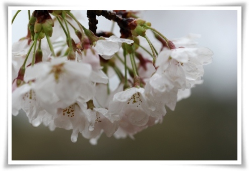 今日のお天気は 最高気温 10.8℃ 最低気温 7.9℃気温はちょっと低め、ちょっと寒いけど晴れてるっていいですよね仕事に行く時は暑いので制服の下を半袖にして正解でした さて、昨日はお休みしていたこのシリーズからです桜を求めて (16) 雨の樹木公園 <4/10>地元の新聞にいつも行っている樹木公園の桜が綺麗だと書いてあったので着いてしばらくしたらもうが降り始めました小雨だし、せっかく来たので傘をさしながらの撮影となりました冬枯れだった カツラ並木 にも新芽が出始めているようですここ 樹木公園 には沢山の桜が植えられていて、名札も付いているのでいくつか綺麗に咲いていたのを名前と一緒にご紹介しますねウスゲオオシマザクラ ( 薄毛大島桜 )オオシュウサトザクラ ( 奥州里桜 )ヤマザクラ ( 山桜 )オオカンザクラ ( 大寒桜 )カンヒザクラ ( 寒緋桜 )シロタエ ( 白妙 )まだまだいっぱい有ったけど、ちょうど綺麗だったのはこのくらいかなぁ~皆さんはどの桜がお好みでしょうかに濡れて咲いているのもいつもとちょっと雰囲気が違ってていいかもね細かいの降る桜並木は空気まで薄らとピンク色のような感じがしますね 水滴フェチの私はもちろん上がりにはこんなも撮ってますよ~シデコブシ周りに何か花でも咲いていたら水滴への写り込みが撮れたんだけどなぁ~カタクリこの公園にも沢山有るんだけど、まだちょっと早かったようですこれ、何の花だと思いますかちょっと薔薇のように見えるけど・・・・・椿なんですよ~こっちは赤と白の絞りの椿赤色と白色の分量が・・・・ちょうど牛のバラ肉のように見えちゃったよ~そう見えないかなぁ~最後に公園の中で出会った野鳥をご紹介しますね オオルリこの色は目立ちますよね~背中はもっと綺麗な青色してますよ~ エナガちょっと遠くだったのですが、桜と一緒に記念撮影ねこの公園は山手に有るのでもう少し桜が楽しめますこれから咲き始める 菊桜 も有るからね~ 今日のたち 水月楓 蓮花梨 Jun今日はちょっと寒かったさて、明日のお天気はどうだろうね~ chappyへのメッセージはこちらから