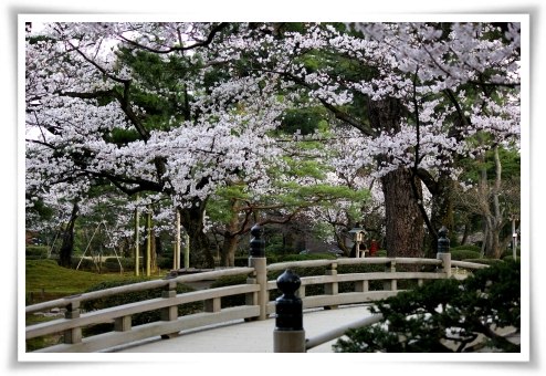 今日のお天気は 最高気温 17.2℃ 最低気温 6.8℃昨日、会社でまた力仕事だったせいか、今朝はまたちょこっと筋肉痛に・・・・・早起きしてを撮りに出かけるつもりが・・・・二度寝しちゃったよ~それにあっちこっちがちょっと痛くて少し出足が遅くなっちゃったけど、いろいろを撮って来ましたがどんどん溜まって行くんですけどね~ さて、今日は兼六園の最終回のお届けです桜を求めて (7) 兼六園・Part.3 <4/6>兼六園から出ると 金沢城 へ続く道が有りますよ~今回は時間の関係で金沢城へは入らずに入り口だけです桂坂出口を出るとお店が並んでいて、道路にはぼんぼりがずらっと飾られています桜と 金沢城の石川門脇の櫓です正面の奥が 石川門 ですよ~朝から人がわんさか居るのでどうしても人が写ってしまうのは仕方が有りませんよね兼六園と金沢城を繋ぐ 石川橋 から見た お堀通り沢山の桜が植えられていて見応えが有りますよ~石垣と桜って絵になりますねちょっと坂道を下って、石川橋と一緒にこれで、青空だったらもっと良かったんですけどね~昨年もこの場所で 結婚式の前撮りをしていたカップルを見かけましたが今年も綺麗なお嫁さんの姿を見つけました美しい花嫁さんでしたよ~周りで沢山の人がを撮ったりため息をついたり・・・・・外国人の観光客はさぞ喜んだでしょうね満開の桜をバックに記念写真を撮っている人が沢山いましたよ~私も頼まれてシャッターを切ったりしましたさて、ここからまた兼六園の中を通ってまでを撮りながら冬の風物詩、雪吊りを外した 唐崎の松曲水と桜これで、兼六園のは終わりです楽しんでいただけたでしょうかおまけに、昨年コンデジで撮ったです ( 昨年のブログに乗せたのと同じですよ~ )もうすぐこんな光景が見られるんだろうなぁ~チャンスが有ったらまた花吹雪も撮ってみたいです 今日のたち 水月楓 蓮花梨 Jun明日はお天気が悪いのかなそれなら、今日撮ってきたの整理をしなくっちゃね~ chappyへのメッセージはこちらから