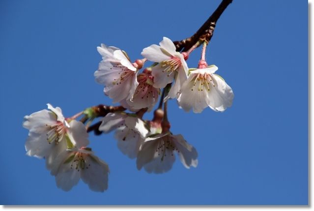 今日のお天気は 最高気温 20.9℃ 最低気温 8.2℃今日は久しぶりに気温も20℃を越えて温かな1日小春日和 と言う言葉にぴったりだったかな~今朝はちょっと早起きして、朝の間しか見られない景色を見に前回は時間が遅くなってしまい見られなかったのでリベンジしてきましたよ~そこには私の大好物がいっぱい時間を忘れてをいっぱい撮ってきましたよ~その後も同じ方面の別の場所へ今日は小春日和をうんと満喫できたいい1日でした今日から新しいシリーズだけど、まだ10月分です秋の公園へ ~大乗寺丘陵公園・Part.1~ <10/24>あの花に会いたくて、久しぶりに訪れたこの公園だけど・・・・・最初はあの花じゃなくてこっちの花が咲いているところに立ち寄ってみましたよ~十月桜 十月桜の特徴は・・・・・薄紅色 小輪~中輪 八重 の桜はどう見ても一重なんだよね~前に一度、公園の管理をしている市の担当課にで確かめた事が有るんだけど・・・・・その時の返事は 『 十月桜です 』 でしたそして今年はついに、こんな名札まで取り付けられていましたよ~お役所って言うところは、帳面に書かれた事しか答えませんからね~春にも一度花を咲かせているんだけど、秋に咲く花は小ぶりで枝先にチラホラと言った感じです下から見上げるとその様子がよくわかるはず~一斉に咲き始める春のソメイヨシノとは全く違った雰囲気なんです木全体を写そうとすると、花が咲いているかどうかさえ分からないくらいです大きく張り出した枝は、何ヵ所もの支えが必要なようですやっぱり青空を背景にこうやって見上げるようにして撮る方がいいのかもしれませんね枝は地面近くまで垂れ下がっているので、普通に撮るとこんな感じになっちゃいますよ~アップで撮れば、背景もボケてしまうのでこれでもいいのかな・・・・・この日は風が強かったので、細い枝の先で咲いている花はゆらゆら揺れっぱなし撮ったもブレてるのが多いだろうと、いつもよりちょっと数を多めに一度にたくさんの花は咲かないけど、花が咲いている時期はかなり長めだから蕾もまだこんなにたくさん有りますよ~地面に近い枝先に咲いている花なんだけど、ちょっと変ですね花びらに水色のシミが有るのが見えるでしょ~最初は何でこんな事になっているのか分からなかったんだけど・・・・・トラックのエンジン音が聞こえてきて、水色の液体を散布しているのを見つけましたこれって、液体肥料 それとも 薬剤散布聞いてみればよかったかもね年配のご夫婦が手を繋いで仲良くお散歩してました素敵な雰囲気なんだけど・・・・・残念なのは奥にさっきの水色の液体を散布していたトラックがいた事アレが無ければ素敵だったんだけどな~桜の枝に急に飛んできて止まったのは シジュウカラ久しぶりに見たんだけど、後姿しか撮らせてくれませんでしたこれからは出会えるチャンスが増える季節になるから、今回はしょうがないかな・・・・・蕾がいっぱいのこの植物、名前が分からないんだけど・・・・・こんな時は、いつものように植物に詳しいブロ友の ジュラさんにで SOSハマヒサカキ ではないかとの返事でしたこんなにたくさんの蕾が一斉に咲いたら・・・・・あのヒサカキのような臭いがするのかなぁ~桜が植えられている所からはお天気が良ければこんな眺めを楽しむことが出来るんです遠くに海まで見えてますよ~上のの中の左のテレビ塔はの近くに有るんです下の中の背の高い建物は、石川県庁舎です今日はここまで、続きはまた明日ね~今日のたち 水月蓮 Jun花音 今日は随分と温かな1日だったね~夜になっても暖房器具が必要ないって感じだけど、寝る時はやっぱり必要かもね chappyへの個人的メッセージはこちらから