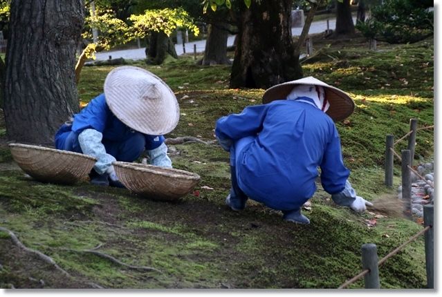 今日のお天気は & 一時 最高気温 12.7℃ 最低気温 7.1℃今日は仕事の月曜日でした昨日のイベント撤去作業はかなり疲れましたいつも使わない筋肉をいっぱい使ったせいか、今日はちょっぴり筋肉痛になっちゃった~明日はもっと酷くなるのかしら昨夜は早めに寝るつもりでいたんだけど・・・・・・・なんだか疲れすぎて、眠れずに結局はいつもの時間まで起きてましたその上今日は仕事、明日も仕事 結局三連勤って事になるんだよね~こんな状態で乗り切れるか心配だけど、頑張るしかないよね~ガンバレ ワ・タ・シ 今夜は早く眠れるかなぁ~昨日の続きでこれが最終回です久しぶりの兼六園・Part.3 <11/2> 最終回たっぷりと雪吊り作業も見たので、来た時とは別のルートで出口へと向かいます広い兼六園の中で時々こんな光景を目にすることが有るんです青色の制服を着た女性たちは手作業で苔の上の落ち葉やごみを拾い、生えてきた雑草を取り除いているんです長時間こんな姿勢でしゃがんで作業って凄く大変ですよね私ならほんの数分で足が痺れちゃうだろうなぁ~いつも何人かのグループで作業をしているんだけど・・・・・この季節はこれから落ち葉が多くなるから大変でしょうね決して目立つ存在ではないけれど、こういった手作業が綺麗な公園を支えているんだよねそうだ、ここで1つクイズを出しますよ~兼六園の広さは、東京ドームの約2.5倍だそうです 約11.4ha樹木の種類は、約160種 樹木の数量は、約8200本兼六園には専属の庭師さんがいるんだけど、さてその専属の庭師さんは何人いるでしょうか答えはコメント欄にお願いします締め切りは、次のブログをアップするまでですよ~さて、話題を元に戻します兼六園は苔の緑も美しいんだけど、その上にカラフルな落ち葉が載っていると更に美しさが引き立ちますよねまだ紅葉の季節にはちょっと早いんだけど・・・・・赤色の落ち葉は 桜 かなぁ~ 桜モミジ って素敵な呼び方だよね竹で幹の下の方を保護されているのは、この前樹木医さんが治療していた桜のようです傷んでしまった部分を大きく切り落としていたようですが、なんとか持ちこたえているみたいです来年の春には花が咲くといいんだけどな~赤い小さなリンゴのような実をいっぱい付けているのは サンザシ緑の苔と赤い実の組み合わせはクリスマスカラーだよね~拾った実は持ち帰ってトイレに飾ってあります楽しそうな笑い声に振り向くと、和服姿の観光客のお嬢さんたちきものがカラフルだね~この噴水は地面の高低差を利用したサイフォン式で、日本最古の噴水だそうです兼六園の中で食事の出来るお店 三芳庵 はどうやらお休みのようです外国人観光客はショーウインドウの九谷焼が珍しいのかを撮ってましたよ~ユズリハ の下でピンク色の花を咲かせているのは ホトトギスここの モミジ は一足早く色付き始めているようです瓢池 はまだ紅葉には早すぎたみたいです 16:32ようやく 真弓坂口 まで戻って来ましたよ~もう暗くなり始めているので、灯りがともり始めています車を停めた場所まで戻る頃にはもうすっかり夕方の気配が色濃くなっていましたこれで今回のお出かけのレポートは終わりです次は・・・・・・紅葉が綺麗な頃にまた見に行けるかな~今日のたち 水月蓮 Jun花音 今日は仕事でクタクタだよ~昨日の疲れが残ってるみたい・・・・・・やっぱり歳だなぁ~今日のおまけ我が家の黒チームこうやって並んでると黒色の質が違うのが分かるよね~2匹が見つめる先は・・・・・新しく買ってきたネズミの形をしたおもちゃだよ~ chappyへの個人的メッセージはこちらから