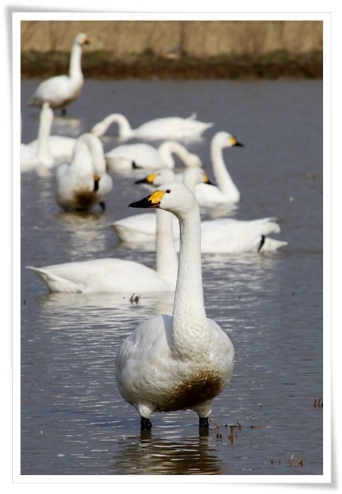 今日のお天気は 最高気温 5.5℃ 最低気温 1.4℃今日は金曜日、仕事は休みです朝から時々がチラチラ降ってるけど積もりませんでした積もるほどの勢いは無いからね今日も出かけずにでゴロゴロなんだか毎日同じこと書いてるような気がするなぁ~今の季節、咲いている花も少ないし・・・・・も積もって無いとなると撮るものがあまり無いんだよねそれにお天気も良く無いのが一番かな昨日の続きです冬の使者 コハクチョウ・Part.3 <1/11> 最終回カメラ目線の コハクチョウ車の外に出ての撮影だけど、ある程度の距離離れていないと警戒して離れて行ってしまいます小さな野鳥と違ってかなり大きいのでそんなにズームしなくても大丈夫なんだけどねそれでも注意は怠らず、時々こちらの様子を見ているようです体を起こしてエンジェルポーズこうやって見ると案外体が大きいのよね~首を伸ばして嘴を空に向けると、ほらこんなに大きいよ~この田んぼは コハクチョウ たちのお気に入りの場所になっているようです田んぼの隅っこにたくさんの羽が落ちているのが見えるでしょここで過ごす時間が長い証拠だよ風の吹く方向も有るんだろうけど、ここには水面が白くなるほど羽毛が集まって浮いています近くの枯草にも コハクチョウ の羽毛が引っかかっている事も・・・・・・綺麗なのを選んで拾って持ち帰りました役目を終えて生え替わりで抜けた羽毛だから擦り切れたりしているのが多いんだけどね泥が付いているのは綺麗に水洗いすればです風向きが変わって、集まっていた場所からこっちへ流れて来る事も有ったけど・・・・・不用意に動くと コハクチョウ たちを脅かすので近くに落ちている分だけね少し離れた空に何十羽もの野鳥の群れが・・・・・・この季節に大きな群れになっている野鳥と言えば ムクドリ かなでもちょっと雰囲気が違うんだよね~かなり大きくトリミングしてみると、翼は白と濃いグレーかな~たぶんあの野鳥は タゲリ だと思います以前もこの近くで何度かこの季節に見た事が有るよ 2018.2.21 撮影陽射しが有れば羽の色がもっと綺麗なんだけど、この日は曇り空で・・・・・・それに凄く警戒心が強いみたい冬の間はこの辺りでまた出会いのチャンスが有るかもしれません空の高い所を舞う猛禽類を発見最初は ミサゴ かなって思ったけど、トリミングしてみると ノスリ のようですもっと近くで撮れるチャンスが有るといいな~車を停めている場所はこんな農道なんだけど・・・・・・道路を歩いて違う田んぼに移動する コハクチョウ を目にする事も有ります陸上を歩いて移動する様子はちょっとユーモラスですそれまで雲の中に隠れていたが顔を出すと コハクチョウ たちの白さが際立ちます水面に写る影も眩しいかなの光が届くとちょっと温かに感じるのは コハクチョウ たちも同じ羽繕いを始めたり、餌を探して水の中に顔を突っ込んだり活動的になるみたい下のでは器用に足で頭を掻いてますよ~斜めに並んだ5羽の コハクチョウちょっと面白くて選んでみたよ大きく胸を張って羽ばたく幼鳥体はもう成鳥と同じ真っ白、顔はまだ薄いグレーで嘴の付け根もまだ黄色になって無いね冬をここで過ごして温かくなったら家族と一緒にまた北へ帰っていくけど次の冬に渡ってくるころには真っ白な姿に変わっているかもしれないねそろそろ帰ろうと思って周りを見回すと1羽違う野鳥が居るのを見つけたよ逆行気味だったので顔がハッキリと撮れなかったのは残念だけど・・・・・マガン かななんだかんだでこの場所に居たのは2時間くらいだったかな~今シーズン初の コハクチョウついつい調子に乗って撮った枚数は・・・・・・なんと 700枚近くになっちゃった同じようなショットも多かったし、ピントが合って無いのも大量生産整理するだけでもかなりの大仕事になっちゃったコハクチョウ たちの北帰行が始まる前にまた会いに行けるといいな~今日のたち Jun花音 雪、積もらないね~でも来週はちょっと積もるかもしれないよ chappyへの個人的メッセージはこちらから