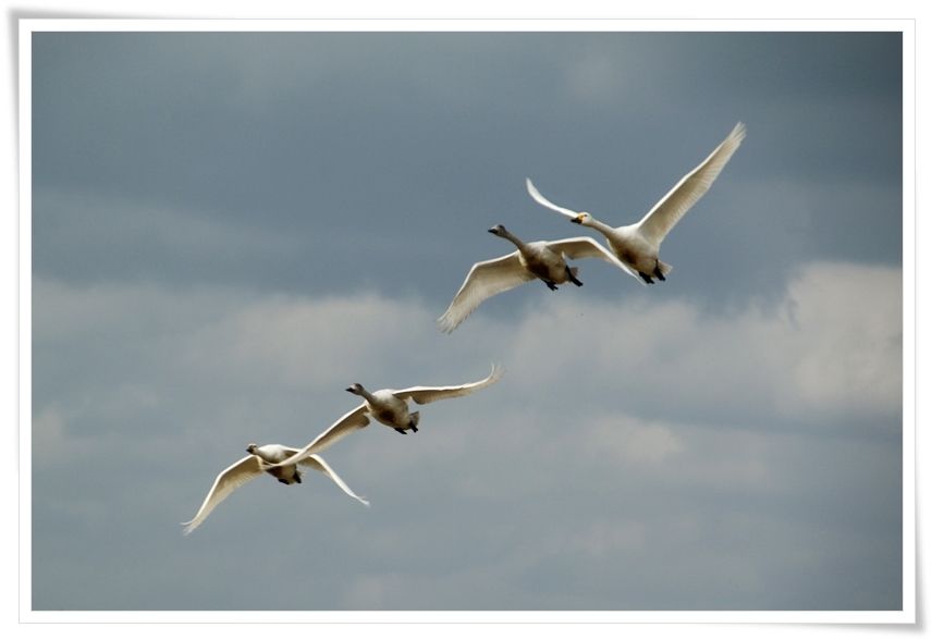今日のお天気は 最高気温 7.6℃ 最低気温 2.7℃今日は仕事の木曜日仕事の方やらなきゃいけない事がてんこ盛り処理しきれない荷物の山がどんどんたまって行く一方ですこれから春に向けて、ますます忙しくなるのは目に見えてるんだけど・・・・・この先を考えると憂鬱になっちゃいます一度どこかで溜まった荷物を全部処理しておかないと大変なんだけどな~の手も借りたいくらい人手不足の問題、かなり深刻です今日は 1月17日阪神淡路大震災 から 24年 になりますねみなさんはどんな想いで今日を迎えられたでしょうか・・・・・あんなに大きな災害はもう無いと思ったあの日から今日までに何度も大きな災害に見舞われた日本この国で暮らす以上いつ自分の身に降りかかってくるか分からないけど今を大切に生活していかなきゃね昨日の続きです冬の使者 コハクチョウ・Part.2 <1/11>今日は コハクチョウ の飛翔シーンを集めてみました空を飛ぶ コハクチョウこういった移動も家族単位だそうです内側の2羽はまだ首と頭に僅かにグレーの部分が残っているで2年目くらいの幼鳥かな・・・・・その両側は真っ白な成鳥 幼鳥の両親なのかもしれませんね空が曇っているので色合いはハッキリとは分かりませんがこちらは両脇が幼鳥かしら多い時はこのくらいの数の群れで飛んでいる事も有りますよ~コハクチョウは家族の絆がとても強く、移動する時も餌を捕る時も眠る時も家族単位での移動が基本今年は見てないけど、以前に見た渡りの時の数もこのくらいだったかな家族を率いているリーダーはやっぱりお父さんそれともしっかり者のお母さんどっちだろうね~水が張られた水田でコハクチョウたちを見ていると突然飛び立つための助走が始まる事が有りますコハクチョウの体重は 4Kg~8Kg 程度翼を広げると 150~225cm ほど翼も大きいけど体も大きいので飛び立つためにはかなりの助走距離を必要とします助走距離はおよそ 10m くらいは必要なんだって~翼を羽ばたかせながらの助走が始まるととても大きな音がするのですぐに気が付きます助走するルートに他のコハクチョウが居ても平気激しく水面を蹴りながら一直線に進んでいくのをカメラで追いかけるのもなかなか大変です飛んでいるところをかなりたくさん撮ったけど、ボケてるのも大量生産したよ~車の窓から撮るのも限界が有るからねしばらく見ていてコハクチョウたちも私たちの存在に慣れてきたところで車を降りての撮影に切り替えましたコハクチョウたちを驚かせないように車の近くで、あまり大きな動きをしないようにしながらです飛び立った小さな群れは頭上を旋回して近くの田んぼに降りるようですよ~高度を下げながら舞い降りる田んぼを決めて・・・・・・まるで飛行機のタイヤを下ろすように足を下へ出して空気抵抗を上手く利用しているみたい次々に田んぼへ無事に着陸成功です水面への着水の方が抵抗が少ないので楽なんだろうけど、いつも水が有るとは限らないからね大空を飛んでいる時は、空気抵抗を少なくするために足は体にピタッと引き寄せていますあの大きな水かきの付いた足をこんなふうに体の後ろに引き付けている時はまだ地面に降りるつもりは無い時かな~地面に降りる体制に入ると足が少し下がって、尾羽も少し広げている様子が分かりますよ~こちらもそろそろ高度を下げて着陸態勢に入るところね首を持ち上げて、翼の後ろの部分も風の抵抗を受けやすい向きに調整ちょうど飛行機のフラップと同じような役割をしているようですコハクチョウが飛行機の真似をしているんじゃなくて飛行機を作る時にコハクチョウの様子を参考にして設計したんだと思います今回は飛んでいる様子より、飛び立つ時や着陸する様子を中心にたくさん撮ったよやが降ってる時はレンズを上に向けるのは難しいからね今日はここまで、この続きはまた明日ね~今日のたち Jun花音 夕方に雷が1発大きな音が怖い花音、いよいよ雷の季節がやって来るよ~ chappyへの個人的メッセージはこちらから