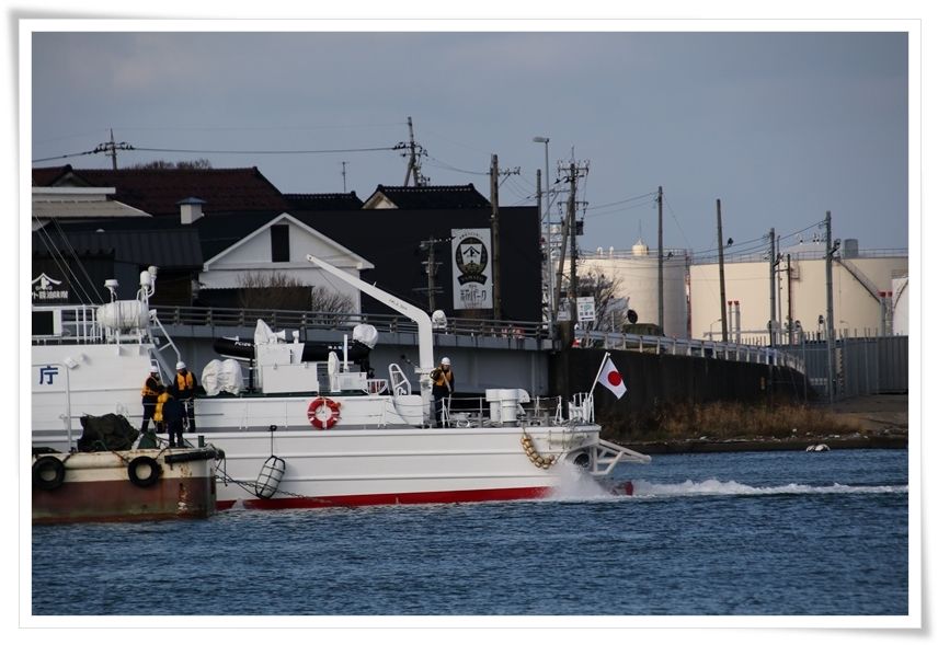 今日のお天気は 最高気温 13.0℃ 最低気温 3.0℃今日は仕事の木曜日月・火曜日と仕事で、昨日はサプライズパーティーを会社で・・・・・今日は仕事で、連続4日会社に行ってる事になりますなんだか毎日バタバタしているような感じかなぁ~月~金曜日で仕事をされている人たちが聞いたらって思うかもしれないけどね毎日忙しくあれこれしている間にもう2月の最終日になっちゃいましたよ~金沢では2月いっぱいはが積もる可能性が有ると言うのが例年ですがどうやら今年はこのまま積雪が無いまま2月が終わるようです3月にが降っても なごり雪 程度かな・・・・・・一昨日の続きですいつもの港へ ~金沢港・Part.3~ <2/6>港でカモメたちを見ていると・・・・・漁船が係留されている船溜まりの外れから1隻の船が動き始めました海上保安庁 はまゆき PC126いつもは見かけない船のようですで検索してみると、2月23日に 七尾海上保安部 で就役披露された 巡視艇 だそうです東京の墨田川造船 で造られて、七尾へ行く前に金沢港に立ち寄ったのかな岸壁からバックで港の中へ出て来たかと思ったら凄い勢いで向きを変えて走り去っていきました訓練中だったのかもしれませんね出て行った海保の巡視艇と入れ替わるようにして漁船が1隻港へ入ってきましたよ~漁船が停泊した場所は、今いる場所からちょっと見えにくい場所だったのでまたカモメを見ていると・・・・・漁連のある方から反対の方へ向かって数人の男性が車の横を通って歩いていきました仕事が終わったのかなとあまり深く考えていなかったんだけど・・・・・しばらくすると今度は男性たちが歩いて行った方からフォークリフトに発泡のトロ箱を乗せて漁連のある方へ移動し始めましたこちらから漁連に向かうトロ箱の中は水揚げされた商品が入っていて漁連からこちらへ向かうトロ箱は新品のようですよ~今度の荷物はずいぶんと重ねたトロ箱の数が少ないね~トロ箱にマジックで書かれた文字はさっき港に入って来た漁船の名前と同じようですもうお気づきかと思いますが、トロ箱の中身は カニ だよ~メスの 香箱ガニ の漁期は12月末までなので、これは オスの ズワイガニ だね石川県で水揚げされたカニの目印の水色のタグが見えていますズワイガニ の漁期は 3月20日 までだったかな・・・・・・近江町市場などへ行くとまだまだカニがたくさん売られているけど寒い季節の食べ物っていう気がするので、これだけ温かになるとね~今度運ばれてきたトロ箱の中身は カニ では無いようですトロ箱からはみ出す茶色の大きな魚トロ箱の側面には タラ って書いてあったよ~トロ箱に入れて運ばれた先の漁連ではセリが行われるのかな・・・・・・運ばれていくトロ箱を見ながら、パンを千切って海に投げているのでユリカモメ が水面からパンを上手にキャッチしていくのを観察しています飛んでいる ユリカモメ はやっぱりいいよね~パンを取に来るのは尾羽に黒い部分と翼に茶色の斑点が有る 幼鳥 の方が積極的な気がします今日はここまで、この続きは明日の最終回でね~今日のたち Jun花音 今週の仕事も終わってようやく週末だぁ~今週はいろいろ忙しかったから、明日はゆっくりするぞ~今日のおまけ先日退職した同僚にプレゼントしたのはこのたちです季節感の有るのを選んだんだけど、気に入ってもらえたみたいです chappyへの個人的メッセージはこちらから