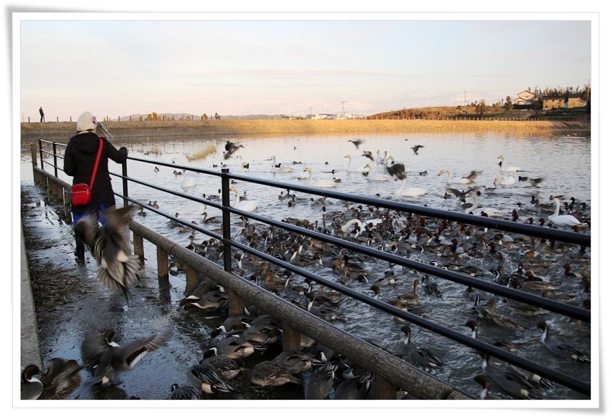 今日のお天気は 最高気温 10.7℃ 最低気温 0.8℃今日は日曜日、仕事はお休みです今日も朝からいいお天気に恵まれましたよ~ここ数年、毎年出かけているイベントが有ったので母と二人で行ってきましたを出るのがちょっと遅くなっちゃったので、会場に着いてあたふたギリギリイベントのスタートに間に合いましたイベントの午前の部を見て、ついでに兼六園にも立ち寄ってみたよ兼六園では白梅が見ごろを迎えていたのでお客さんがいっぱいでしたはいっぱい撮ってきたので、順番が来たらまたブログで紹介しますね今日もいっぱい歩き回ったのでもうクタクタで眠いよ~来週は仕事の日が多いので、今夜はちゃんと布団で体を休めなきゃねこのシリーズもようやく最終回です白鳥に会いに ~田尻池・Part.8~ <1/30> 最終回係の人がまた玄米を撒いてるよこうなると圧倒的に数の多い オナガガモ が岸の近くを独占しちゃうねしばらくしたらまた 食パン がバケツに入れられて運ばれてきたよ周りの人たちにも配っていたので、私もパンをあげるのに参加しました食パンは近くの小学校の給食に出されたのの耳の部分でした前に見た小さな女の子と同じくらいの女の子がもう一人歳も近いのですっかり仲良しになって一緒にパンをあげるのに夢中になってました小さな手が寒さで真っ赤になっているのに一生懸命になってたよいきものを大切にする気持ち、こんな小さい時に育まれるんだよね遠くの山並みがピンク色に染まっています凄く綺麗だよねもうちょっと赤くなるのかと思っていたけど・・・・・・この時間が一番綺麗だったかも~カメラを持ってきていたおじさんも、今日は少し物足りないかな~って言ってました池の奥の方では、数羽の オオハクチョウ が輪になって鳴き交わしていました何を話しているんでしょうねこうやって家族の絆を強めているんだろうね空を見てると、他で昼を過ごしていた オオハクチョウ が 田尻池 に戻ってきたよ翼を広げてブレーキを掛けながら着水成功です餌が配られていた時間から少し遅れての到着だけど、他で食べて来たから大丈夫なのかなもうすっかり辺りは暗くなり始めて、の車も随分と少なくなりました餌が撒かれていた時のあの騒動が嘘のように 田尻池 に静かな時間が戻って来たようです餌を撒いていた係の人と少し話をしたんだけど白鳥たちが戻ってきたこの後の時間になると、今度はカモたちがどこかへ遊びに出かけるんだって~それから、餌の係は数人で交代しながら続けているそうです大変な仕事だものね私たちも車に乗り込んで帰る事にしましたスマホのナビをセットしたら、今度は別のルートを案内してくれました17:30田尻池 にはこんな看板が設置されているんだけどこれは近くを通る 北陸自動車道 からも見えています北陸自動車道の呉羽SA に車を停めて、歩いてならここにも来ることが出来るんですそうなると帰りがまたちょっと大変かもしれないけどね数年前からちょっと気にはなってたんだよね~いつかチャンスが有れば訪れてみたいという思いが今回叶いました17:37帰りは 富山西IC から北陸自動車道 に入りました帰りの 北陸自動車道 では夕焼けが綺麗でしたこの日の 田尻池 までの往復走行距離は 120.1km思ったより近いのでまた行けたらいいな~今頃は残っている コハクチョウ の数はずいぶんと減っているだろうし次はまた来シーズンかな最後はこの日拾ってきた 白鳥とカモたちの羽テニスボールの空ケースにいっぱいになるくらい有るよあれだけの数のカモが居たので拾い集めるのは簡単だったからねこれで 田尻池 に行った話は終わりです~今日のたち Jun花音 今日はお留守番ご苦労様でした明日は仕事だから今夜は早く体を休めなきゃいけないので、こっちも協力してね chappyへの個人的メッセージはこちらから
