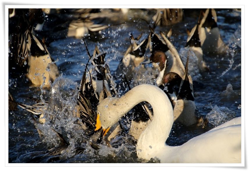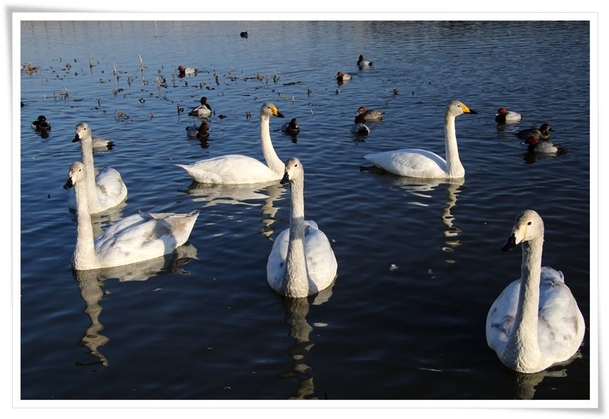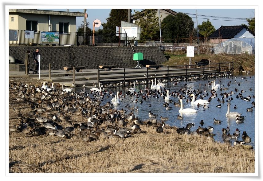 今日のお天気は 最高気温 10.4℃ 最低気温 3.2℃今日は土曜日、仕事はお休みです昨日は久しぶりに出歩いてちょっとお疲れモードだから今日はちょっと朝はゆっくりと起きてのんびり~疲れがとれたようなとれてないような・・・・・・午後になってちょっと確かめたい事が有ってお出かけあまり期待はしてなかったけど、ちょっといい事が有りました内容についてはまたそのうち報告する事にして・・・・・・出かけたついでに久しぶりに海まで夕日を見に行ってみました水平線の上には雲が有って、夕焼けは残念な感じだったよまあ、そんなにいい事ばかりは続かないよね~昨日の続きです白鳥に会いに ~田尻池・Part.7~ <1/30>もう少しだけこのシリーズにお付き合いくださいオナガガモ の猛烈な勢いに負けずに餌を食べようと頑張る オオハクチョウ数で言えば負けちゃってるけどね~岸に近い場所ではやっぱり オナガガモ が数にモノを言わせてますよ~岸から少し離れた水深が深そうなところは、首が長い オオハクチョウ や潜水できる キンクロハジロ と ホシハジロ が有利みたいだね潜水できない オナガガモ は水深の浅い所に集中するのはしょうがないよね餌を撒く係の人はバケツを持って何度も物置小屋との間を往復していました私のいる場所の近くでも餌が撒かれたので近づいて見ると・・・・・・餌は 玄米 だったようです餌を巡って小競り合いがあちこちで起きてます胸を突き出しておしくらまんじゅう嘴での突っつき合いなどの激しいシーンも喧嘩してないで食べるのに専念すればいいのにねがずいぶんと低い位置まで下りて来たので池の一部が日陰になり始めています係の人が玄米の入ったバケツを持って傍を通り過ぎたので急いでお米って重いから何度も運ぶのは大変な仕事だよねみんなに餌が行き渡るように場所を変えながら何度も玄米を撒いていきます陸の上専門の オナガガモ たちは係の人の後を必死に追いかけてるよ~陸の上でも熾烈な餌争いが続いていますもちろんとても賑やかなんです凄い勢いはの方が伝わるよね餌を貰おうとみんな必死だからね~夕方になり、白い山並みがほんのりと色付き始めています何往復か玄米が撒かれた後に今度は 食パン を入れたバケツが運ばれてきて見ている人たちもどうぞ~と言う事になりました小さな女の子もカモたちにパンを投げるのに夢中になってました私がこっちへ行った時にはバケツの中は空っぽちょっと遅かったかな・・・・・・食パンを貰おうと オオハクチョウ の幼鳥がうんと近づいてきたよ体の羽の色が違うので前に近くにいた子とは別の子だねパンを食べたくて期待している顔してるよね今日はここまで、この続きは明日の最終回でね~今日のたち Jun花音 しばらくはいいお天気の日が続くそうだよ春の気配を探しにまた出かけなきゃね今日のおまけ昨日のランチは 野路さん の 豪力うどんお餅の揚げ出し・厚揚げ・牛肉・白菜 などの具材がいっぱい入ってかなりのボリュームですお腹がいっぱいになって動くのが億劫になるんだよね~ chappyへの個人的メッセージはこちらから