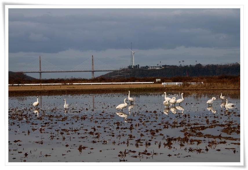 今日のお天気は 最高気温 9.9℃ 最低気温 3.7℃今日は仕事の木曜日朝から小雨がずっと降ってたかな・・・・・・それでもやっぱり気温は高めでした私の職場、店長がまた転勤になります店長の最終出勤日は日曜日だけど、出勤日が被るのは今日が最終日退勤時に最後の挨拶をして・・・・・・・う~ん、今の店長って何人目だったっけ20数年も働いていると店長が何人目だったかって忘れちゃうよね~次に着任する新しい店長に会うのは・・・・・・・火曜日になるかな仕事がしやすい人だといいんだけどな~コハクチョウ-2 ~ 河北潟干拓地 ~ < 12/20 >今シーズンに入り コハクチョウ に会いに出かけるのは今回で2回目になります今回も前回とほぼ同じ場所でしたお天気は前より良かったし、風も無かったので水が張られた田んぼは水鏡になっていましたいつものようにしばらくは車の中からハクチョウたちを脅かさないように観察して暫くして慣れてきたところでゆっくりと車を下ります警戒していたコハクチョウたちも安全だと分かるとのんびりといつもの様子に戻ります畦で寛ぐ一番手前の子は片足を後ろに伸ばしたままになってるよ~別の田んぼの様子はこんな感じで前回より数は少なくて疎らな感じがするかなの有る位置だとこっちの方が綺麗に見えるかな・・・・・・警戒心が薄れてくると餌探しに夢中に・・・・・・・起きている時間のほとんどは餌探しの時間だもんね田んぼの持ち主さんらしき人が田んぼの見回り&手入れの為にやって来ました自分たちの近くを歩き回る人間に白鳥たちはちょっと慌て気味でも、自分たちには興味は無さそうな雰囲気はわかるのかな急いで田んぼから別の田んぼへと移動するハクチョウたちもいました軽トラは先ほどの人が乗って来てそこに停めたんだけど道路を渡る銭湯の白鳥が翼を広げている様子はまるで手を上げているみたいでちょっと笑えるかなこっちも一列になって畦を越えて隣の田んぼへ驚いて飛び立った群れも少しだけ居ました青空じゃないからちょっと黒っぽく見えちゃうのはしょうがないんだよね飛んでいる姿は優雅に見えるけどサギなどに比べると体はずいぶんと大きいかな飛び立つ時にもかなりの距離の助走が必要になります水を蹴る音や翼の羽ばたきはかなり大きな音がしますこれだけの体の大きさだとそうなるよね助走する時には前に他のハクチョウたちが居ないルートを選ぶんだろうけど・・・・・・・どこを見てもハクチョウだらけの時は大変だろうな~こちらの田んぼは飛び立ったハクチョウたちの姿が田んぼの水鏡に映っていました下りて来る時は水の上に足を伸ばしてザァ~ッと言う感じで着陸です草むらに落ちていたハクチョウの羽根フワフワな部分と小さな水滴がとても綺麗だったよ今日の花音 帰ってきたら部屋に敷いて有ったラグがクチャクチャになってたよ一人で暴れまわったのかな~ chappyへの個人的メッセージはこちらから