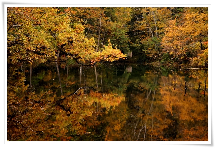 今日のお天気は &霙 最高気温 5.5℃ 最低気温 1.1℃今日は仕事の木曜日もう鼻風邪用の飲み薬は飲んでいませんそれでも問題なく仕事には行けるようになったので、完治と言っていいかな時々くしゃみが出る事は有るけど、まあ問題は無いでしょう今日も水分の多いが降ったり止んだりそれが強い風に乗って真横に飛んで来ると、車の窓に貼り付いて横が見えなくなって仕事の帰りに食料品を買いにスーパーに寄ってを停めるのに一苦労しました水分の多い雪で道路ももビショビショこういう日は外出が億劫になっちゃいます昨日の続きです新潟旅行・1日目-2 ~ 龍ヶ窪・Part.1 ~ < 11/5 >新潟旅行1日目の目的地 龍ヶ窪 に到着です 14:34場所は 新潟県中魚沼郡津南町谷内昨日の日記の最後に載せた MAP の右下の1番の所ねのプレハブ小屋に係の人が居て、駐車料金を支払って散策のスタートです階段を下りて・・・・・・・そうそう、見覚えの有る風景です実はこの場所、2018年11月6日 に日帰りバスツアーで一度訪れた事が有ります その時の日記そのバスツアーはここ以外にもいくつか新潟を見て回ったんだけど・・・・・・それぞれの場所での自由時間はとても短くて駆け足になってしまいます特にこの場所は・・・・・・僅か25分くらいでバスに戻らなくてはならなくてこの階段を上ってその奥が目的地そこまでの往復も制限時間内に済ませないといけないからね龍ヶ窪 にはいくつもの伝説が有るそうで、こんな看板が出ていますかなり読みにくいんだけどね~遊歩道と書かれたここが入り口です池の周りの木々の間から緑色の池の水面が見えていますここの池は長細い形をしていて、長い方は 220m 短い方は 70m深さは 1.5~2m 面積は 11900平方メートル毎分 30トン 日糧 43000トン1日で池の水が全て入れ替わるほどの水が湧き出ているそうです水は決して濁る事が無く、緑色に見える綺麗な水で満たされていて 名水百選 にも選ばれています遊歩道の入り口から少し歩いたところに、池の畔まで近づく事が出来る場所が有ります前回は撮影スポットのこの場所では順番待ちだったな~今回は他に人が居なかったので思う存分楽しむ事が出来ちゃいました池の周りには黄葉する木々が生えているので秋はとても眺めが綺麗なんだけど・・・・・・・今年の黄葉はココでも少し遅いのかな綺麗な水鏡になっている水面に落ちた葉っぱと、写り込む周りの木々の黄葉がとても幻想的です前回の日帰りバスツアーの時は制限時間が有る為、ここから先は歩いていません奥にも竜神様の祠が有るそうですもちろん今回はこの先も散策しますよ~どんな虫が食べたのか知らないけど、葉っぱはレースのような状態になってましたゆっくりと散策したりを撮っていたら若いカップルが後ろから歩いて来て追い抜いていきました少し歩いたところで目の前が平気た場所に到着しましたここが池の長い方の先端かな小さなモミジはまだ色付きの途中ですあちこちで キノコ を発見しました見えて来たのが奥の竜神様と言われる 八大龍王権現 の祠のようですここには湧水を汲む事が出来る場所が有ったらしいのですが・・・・・・・ガヤガヤと団体客がやって来たので場所を譲る事にしたので確かめられませんでした賑やかな団体客が帰って行った後で少しここの様子を・・・・・・大好きな水滴透明度の高い水の中に沈んだ落ち葉たちもう少し黄色が鮮やかだったらもっと綺麗だったかな・・・・・・・今日はここまで、この続きはまた明日ね~今日の花音 今日は出張から帰って来た次男にたっぷりと遊んでもらったらしいよ良かったね今日は恒例の体重測定の日 (前回との増減 )花音・・・・・6.89kg ( +0.04kg )今回は、記録更新してるみたいだよ知らないよ~ chappyへの個人的メッセージはこちらから